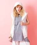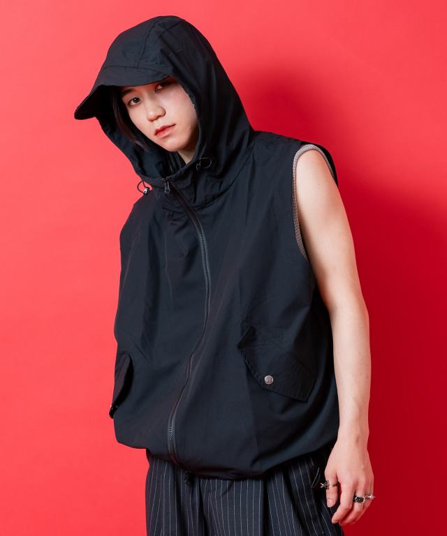 バイザーフードジップアップフーディーノースリーブジャケット / メンズ レディース ユニセックス フード パーカー ベスト