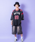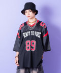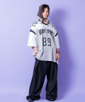 a.p.o.v. -ankoROCK's select- サテン×メッシュ×リブ切替ナンバリングオーバーサイズフットボールシャツ