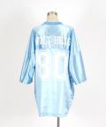 ギラギラっとしたラギッドな艶感がグラマラスなシャイニーポリ生地×フロントへのナンバリングプリント、バックへのショルダーへのロゴとビッグナンバリングでインパクトスタイルを構築。フロントはシンプルなナンバリングながらバックをロゴと組み合わせる事で対比を作り出したテクニカルなアプローチも◎。本格的なゲームシャツモチーフながらラフにTシャツやカットソーとしても着たい一枚。