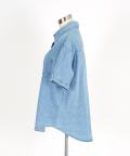 オーバーサイズ&ショート丈デニムシャツ / 半袖 レディース メンズ ユニセックス 無地 シンプル ヴィンテージテイスト 胸ポケット