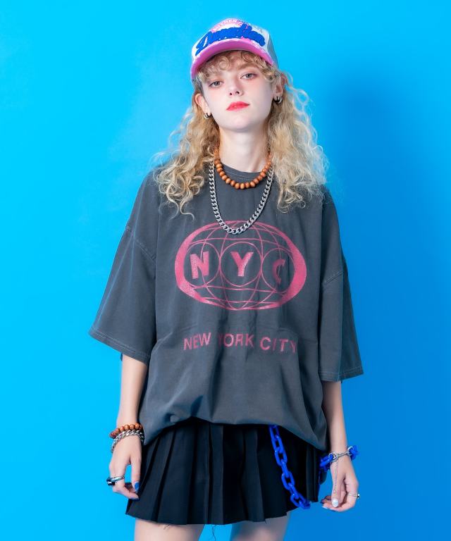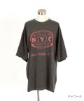 NYCプリントピグメントオーバーサイズTシャツ / 半袖 カットソー メンズ レディース ユニセックス ヴィンテージテイスト ビッグシルエット