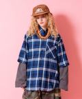 a.p.o.v. チェック柄シャツレイヤードオーバーサイズカットソー