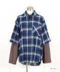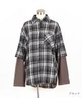 チェック柄シャツレイヤードオーバーサイズカットソー / ユニセックス メンズ レディース 長袖 ロングスリーブ Tシャツ