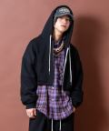 やや肉感のあるクラシカルなヘヴィーウェイトコットンのスウェット生地×定番のジップアップパーカー/フーディスタイル。ダボっとラフにストリートな感覚でとりいれられるオーバーサイズ/ビッグシルエットがメンズレディース問わずユニセックスで着用出来る一品。別売りのワイドパンツ(seb0220)とセットアップスタイルでも着用出来るマストな一品。