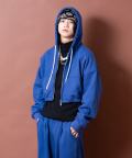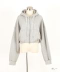 ダブルジップアップスウェットオーバーサイズクロップドパーカー / ユニセックス メンズ レディース ZIP フーディー 長袖 短丈 ショート丈