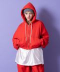 90sムード直系かつイットなトレンドスタイルの短丈(クロップド)スタイルが一見してインパクト。ダボっとしたワイドなアームや身幅のルーズなフォルムとミックスすることで古臭くなり過ぎない現代モードな空気感にしっかりと着地。アッパーなシルエットワークを邪魔しないリブ無しかつしっかりと絞りをゴムで入れることで立体的なバルーンフォルムを構築したさりげないギミックに加え、クラシカルなカンガルーポケット使い、シンプル単色に映えるホワイト色のドローコード、着こなしの幅を広げるダブルジップアップ仕様のファスナーなど無駄を削いだミニマルな作りがセンス◎。同生地のルーズなワイドスウェットパンツ(seb0220)とセットアップで着用可能かつアンニュイなスタイルを構築できる主役顔な一着。90s/Y2Kスタイル、古着ミックス、アメカジやワークスタイルなどのクラシックムードなスタイルはもちろん、韓国ストリートファッション、スケーター、ストリートスタイル、グランジといったカジュアル全般、さらにはモードスタイルやキレイメなどのハズシアイテムやアクセントとしても◎