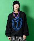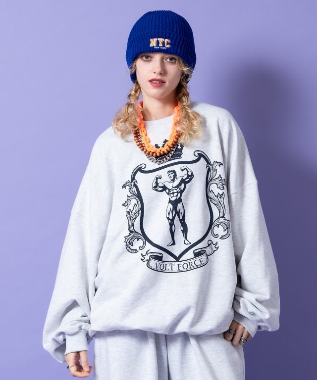 レトロなニュアンスとどこか無機質なモード感を漂わせるワントーンで施したアメカジ風のプリントデザインがグッドムード。しっかりとした肉厚なコットンスウェットの生地感にボディーカラーに映える一色刷りでのコミカルなニュアンスとクールなスタイルのバランス感が主役顔。90s/Y2Kスタイル、古着ミックス、アメカジやワークスタイルなどのクラシックムードなスタイルはもちろん、韓国ストリートファッション、スケーター、ストリートスタイル、グランジといったカジュアル全般、さらにはモードスタイルやキレイメなどのハズシアイテムやアクセントとしても◎