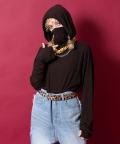 ストレッチジャージー指穴ハイネックマスクレイヤードフードカットソー / ユニセックス メンズ レディース フード 長袖 Tシャツ パーカー