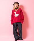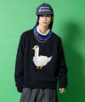 可愛らしくもどこか無機質なモード感とレトロでクラシカルなポップ感を漂わせるガチョウをフロントにアップしたデザインが一見してグッドムード。表面を毛羽立たせた上品な起毛感の肉厚なローゲージ編みニットが高級感たっぷりで、インパクト先行にならないエレガントマナーをしっかりとキープした主役顔な一枚。90s/Y2Kスタイル、古着ミックス、アメカジやワークスタイルなどのクラシックムードなスタイルはもちろん、韓国ストリートファッション、スケーター、ストリートスタイル、グランジといったカジュアル全般、さらにはモードスタイルやキレイメなどのハズシアイテムやアクセントとしても◎