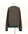 a.p.o.v. モザイクドットボーンプリントオーバーサイズボーダー配色リブ切替ピグメントスウェットカットソー