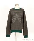 まるでアート作品のような世界観を奏でるモザイクドット手法でプリントした胸元へのスケルトン肋骨プリントデザイン×古着ライクな枯れた色味を表現するピグメント加工を施したスウェットコットンのモノクロタイトピッチボーダー柄×ネック裾をボディカラーに差すように別色で切り替えした配色デザインで独創的かつ無機質なモード感漂うネオストリートな世界観がグッドムード。ゴシックストリート、ヴィンテージニュアンス、クラシカルかつモードな雰囲気はトレンドに突き刺さる主役アイテム間違いなしの一着。韓国ストリートファッションをはじめとし、90s/Y2Kスタイル、古着ミックス、アメカジやワークスタイルなどのクラシックムードなスタイルはもちろん、スケーター、ストリートスタイル、グランジといったカジュアル全般、さらにはモードスタイルやキレイメなどのハズシアイテムやアクセントとしても◎