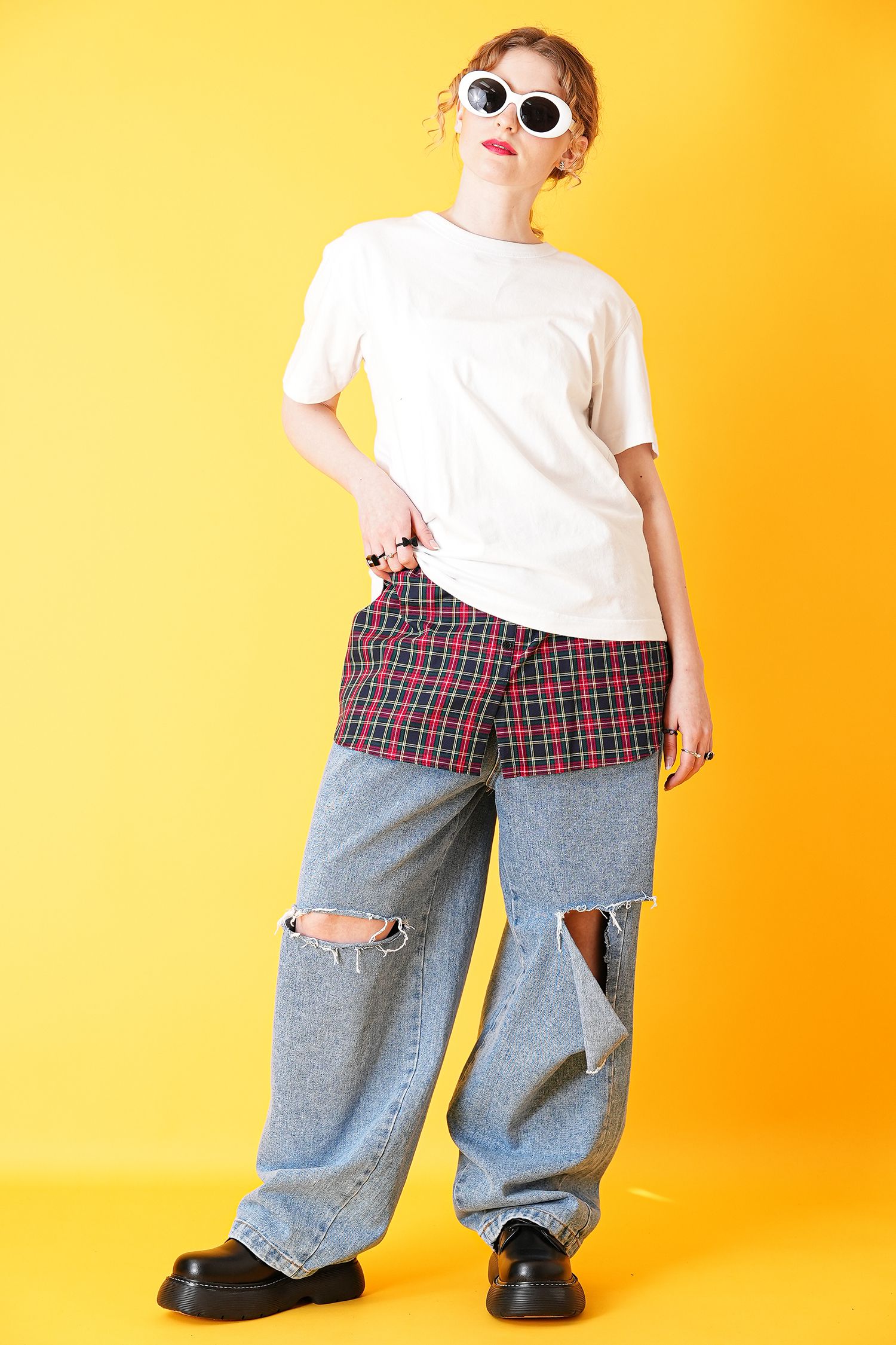 『シャツ/ブラウスをインナーに重ねてほんの少しモードな香りを表現』できるシャツ型デザインが印象的。上品なモード感の黒白ブロード、鮮烈な赤やネイビーがスパイシーなタータンチェック柄、トレンドライクなメッシュ、フェミニンかつアバンギャルドなチュール、クレイジーパンキッシュな青×黄チェック、どこかレトロでスウィートなドット柄、トレンドのクラシックなストライプ柄・・・ほんの少しの足し算でコーデが劇的に【自分色】に。