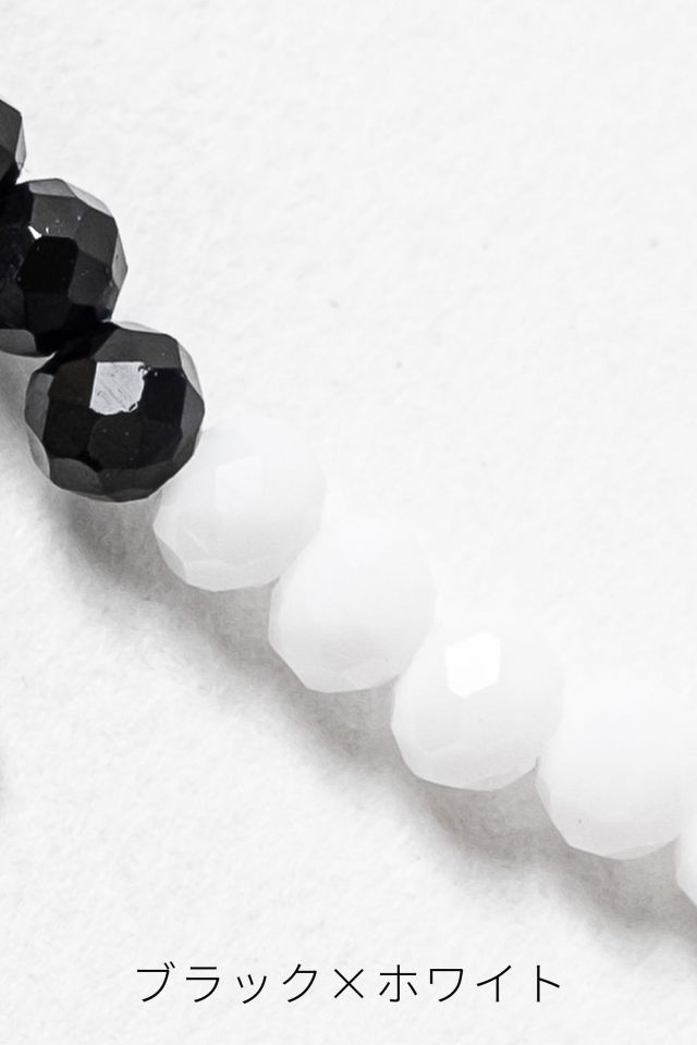 ランダムにカットして嫌味の無い自然な艶がグラマラスなカットビーズを、ブラック統一×ホワイト統一のアシンメトリーなツートーンフェイスでモードなニュアンスに。