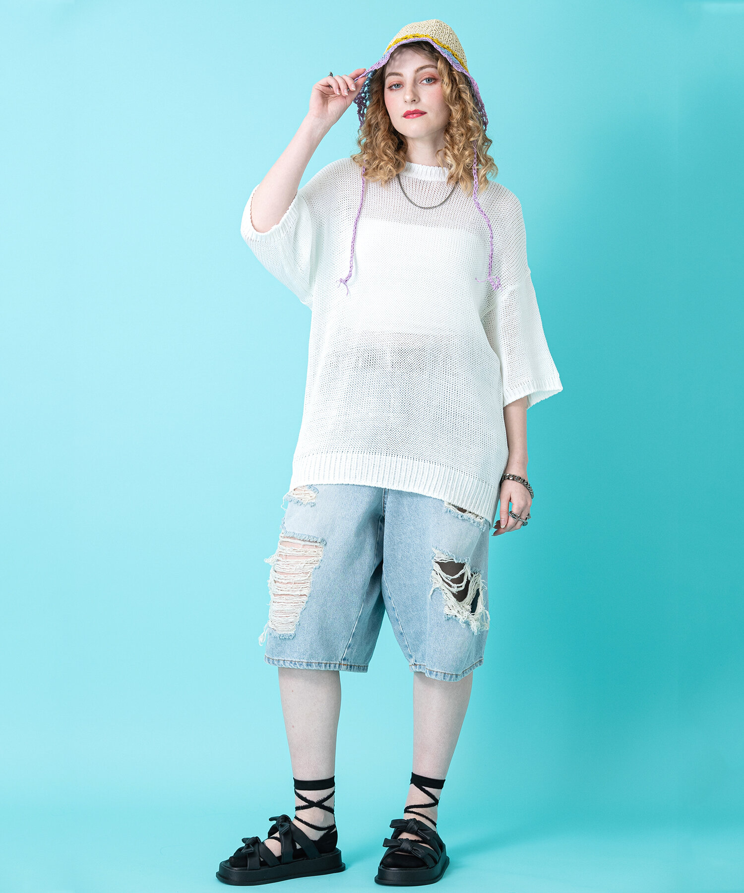 シアーで表現したまるで本格的なバレリーナシューズを履いているかのような表情の柄模様がキュートでいて無機質なモード感も感じさせるアートのような世界観。豊富なカラバリ&韓国ファッションライクでSNS映え、甘くてハッピーな主役級の存在感が◎