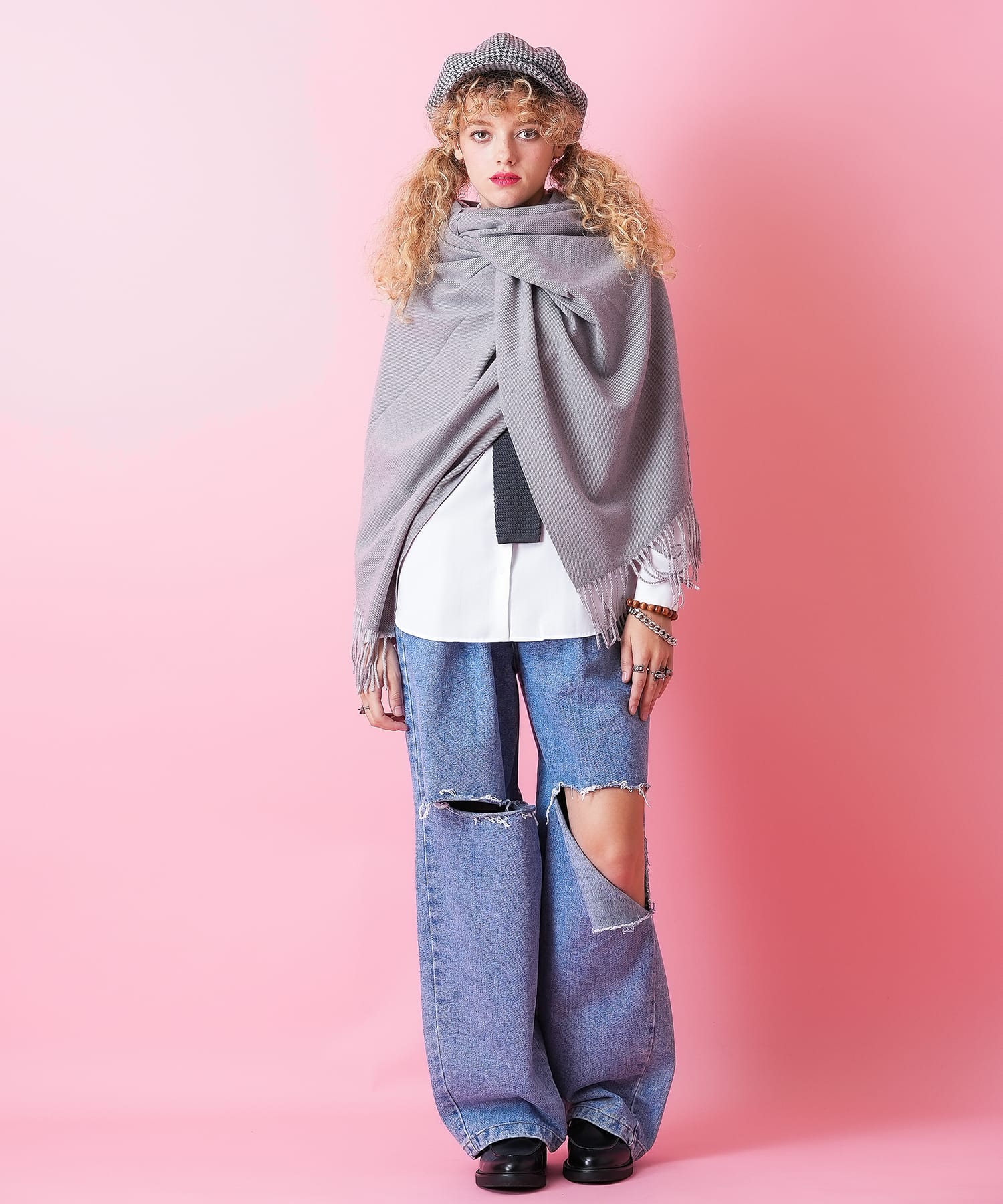 AWシーズンの定番マフラー/ストール。 ボリューミーな見た目に肩掛けのストールとしても使える大判サイズが◎