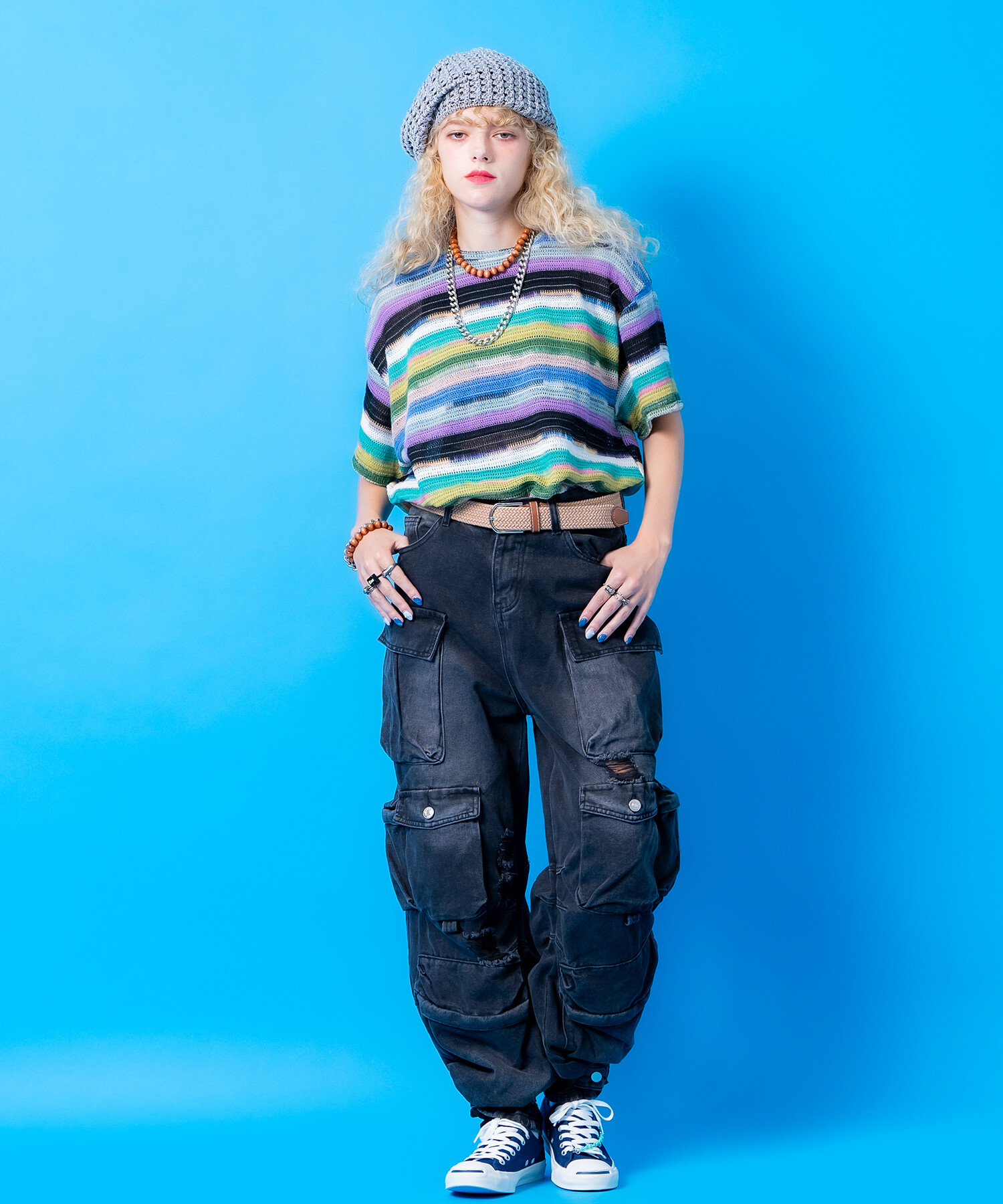 Y2K、90s直系のアッパーかつファニーなインパクトを与えるオモチャ/玩具をイメージしたプラスティックチェーンのポップでキュートな存在感が圧倒的に小物勝ち。カワイイながらもどこか無機質なモードニュアンスも◎。コーデやスタイル、その日の気分や色合わせ、一点突破の差し色に、友達や恋人とお揃いで、推し色推し活に・・9色もの圧倒的な色展開でオシャレや生活に無限の可能性と彩りを。