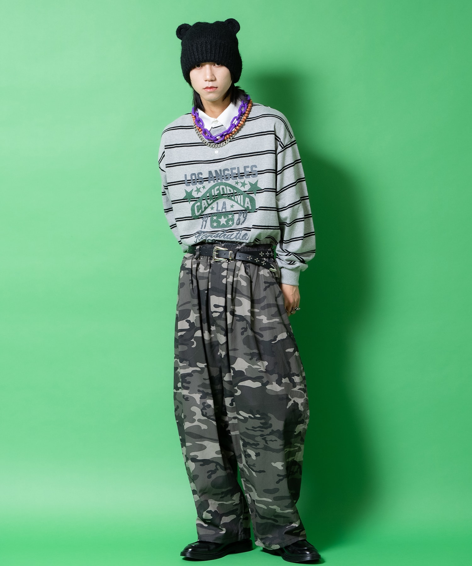 ストリートファッションをはじめとする90s、Y2Kといったクラシックなムードを取り入れたトレンドの流れや、短丈トップスやボトムインスタイルが全盛の今、絶対注目の『見せる』装飾ベルト/スタッズベルトスタイル。タフな合成皮革×やや細めの幅が印象的な定番的ベルトはメンズレディース問わずユニセックスで取り入れたいマストなアイテム。