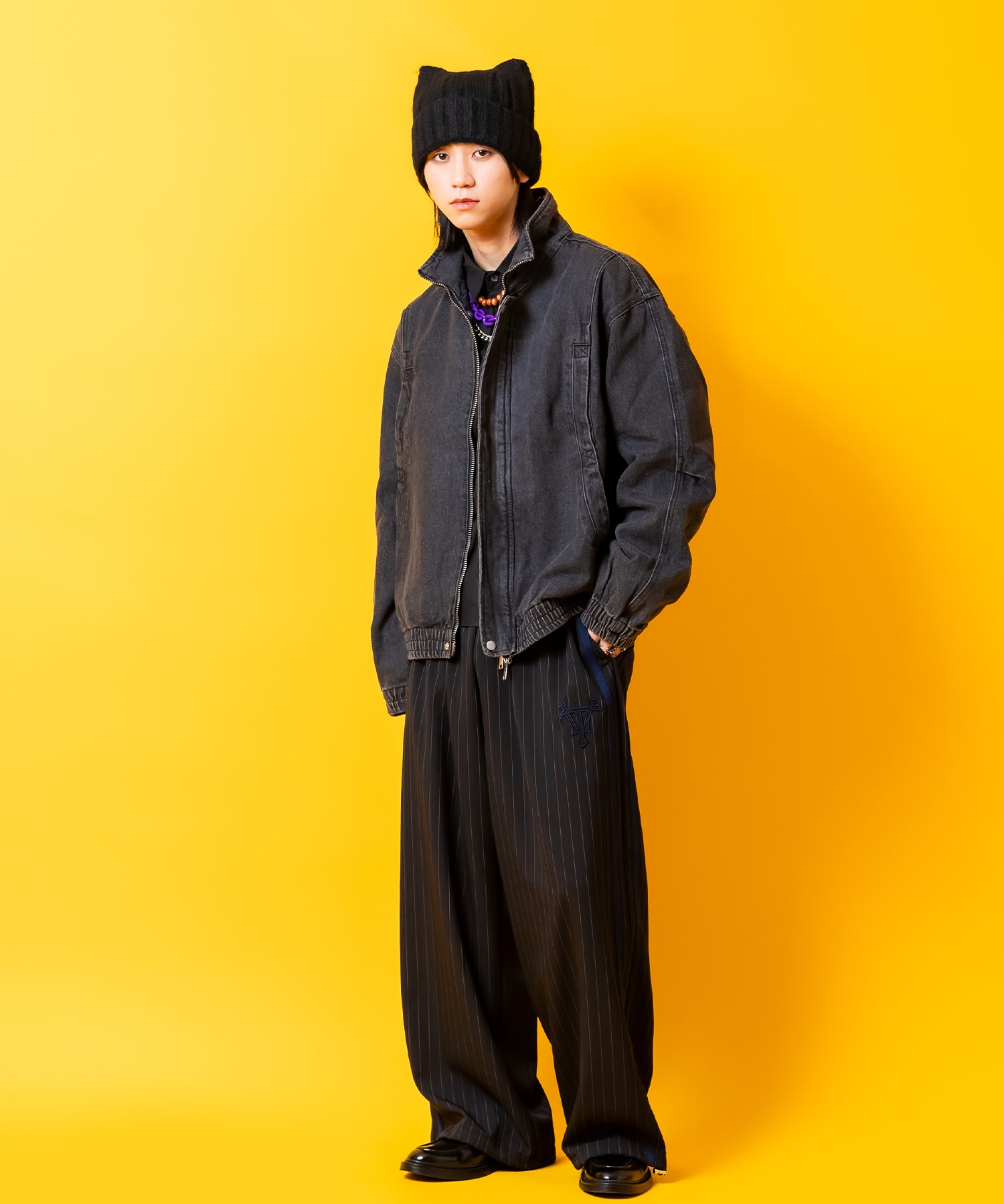 プクっとキュートに主張するネコ耳デザイン×フワフワっとしたファー混のスウィートなグラマラスニュアンスを奏でる肉厚アクリルニットのコンビが一見してスーパーキュート。折り返し部分の立体的なワイドリブ、ボディーの超極太などこかレトロな空気感のリブデザインも上品かつエレガントなポイント。耳付きデザイン×素材感を映えさせる無駄を削いだミニマルな無地スタイルも世界観を加速。韓国ファッション、韓国ストリートはもちろんのこと、90s/Y2Kスタイルに古着ミックスタイルやアメカジなどクラシカルなニュアンスのトレンドから、ストリートスタイルやモードスタイルといったスタイルのハズシアイテムとしても相性抜群。インフルエンサー界隈、韓国トレンド、SNS,インスタ映え、TikTok・・・全部飲み込んで『カワイイは正義』なキラーアイテム。