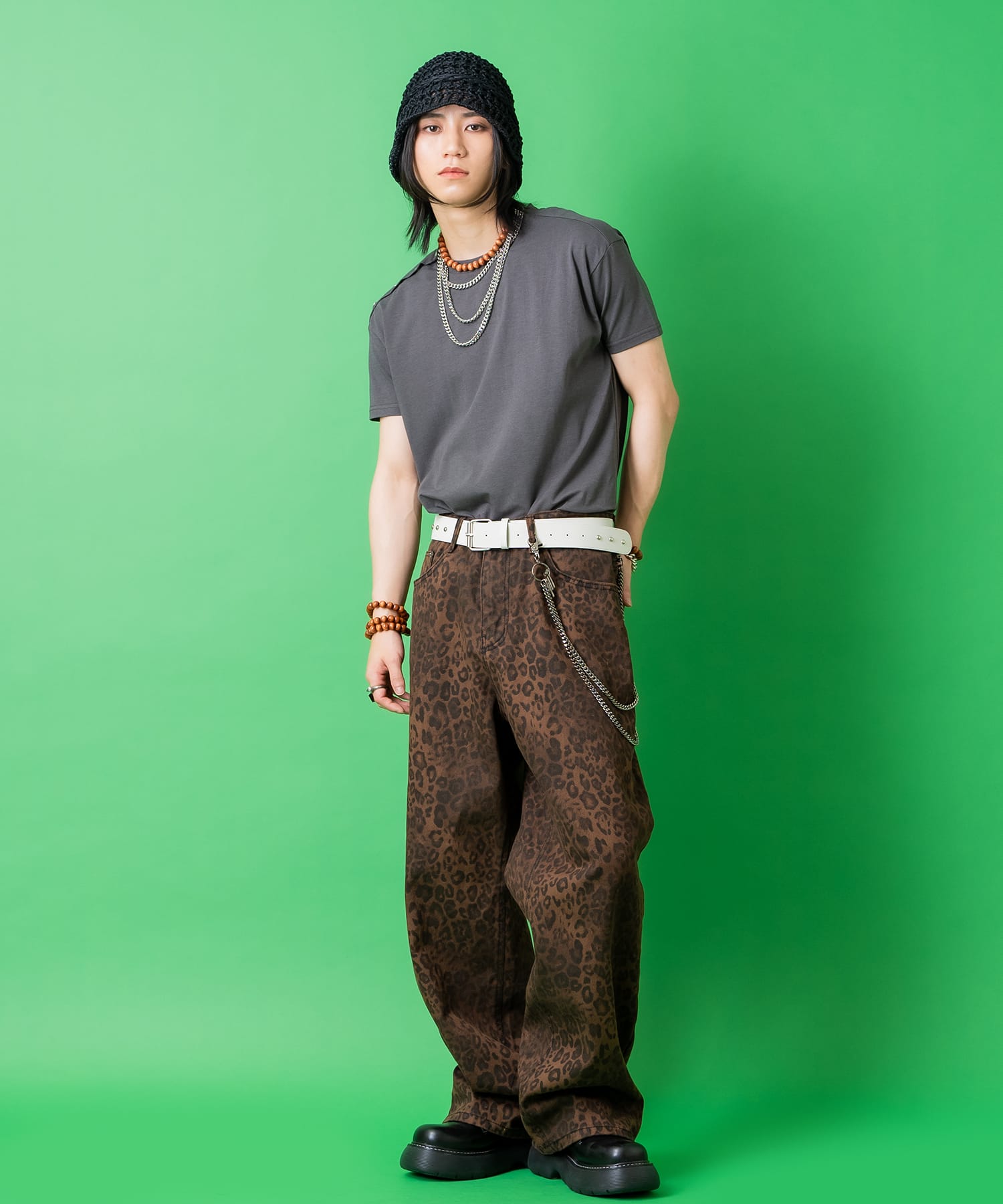 躍動感溢れるリアルタッチかつレトロな空気感を感じさせるレオパード柄のプリントデザインがインパクト。ウォッシュを施してユーズドライクなフィルターをかけることで棘を感じさせ過ぎない雰囲気も◎