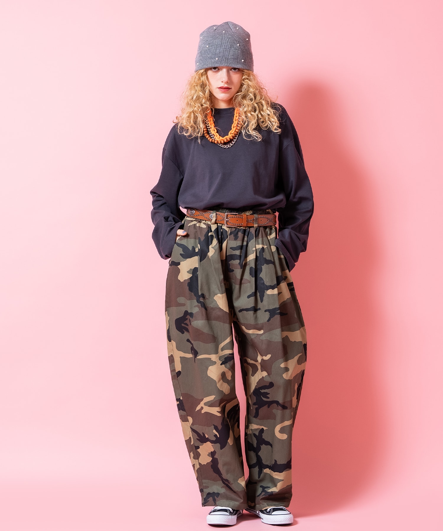 • a.p.o.v. カモフラコットン立体タックバルーンスーパーワイドパンツ
