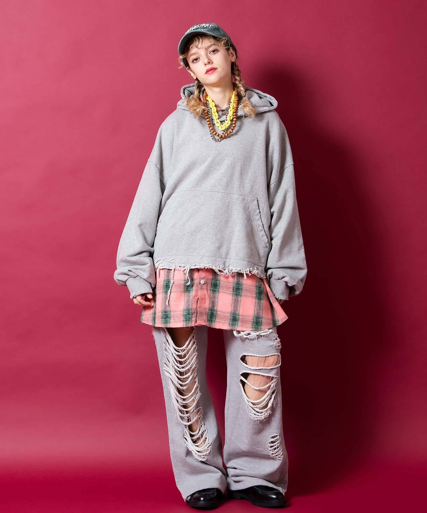 • a.p.o.v. スーパークラッシュダメージワイドスウェットパンツ