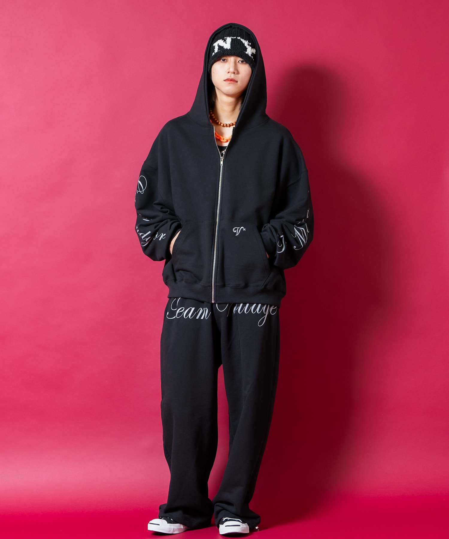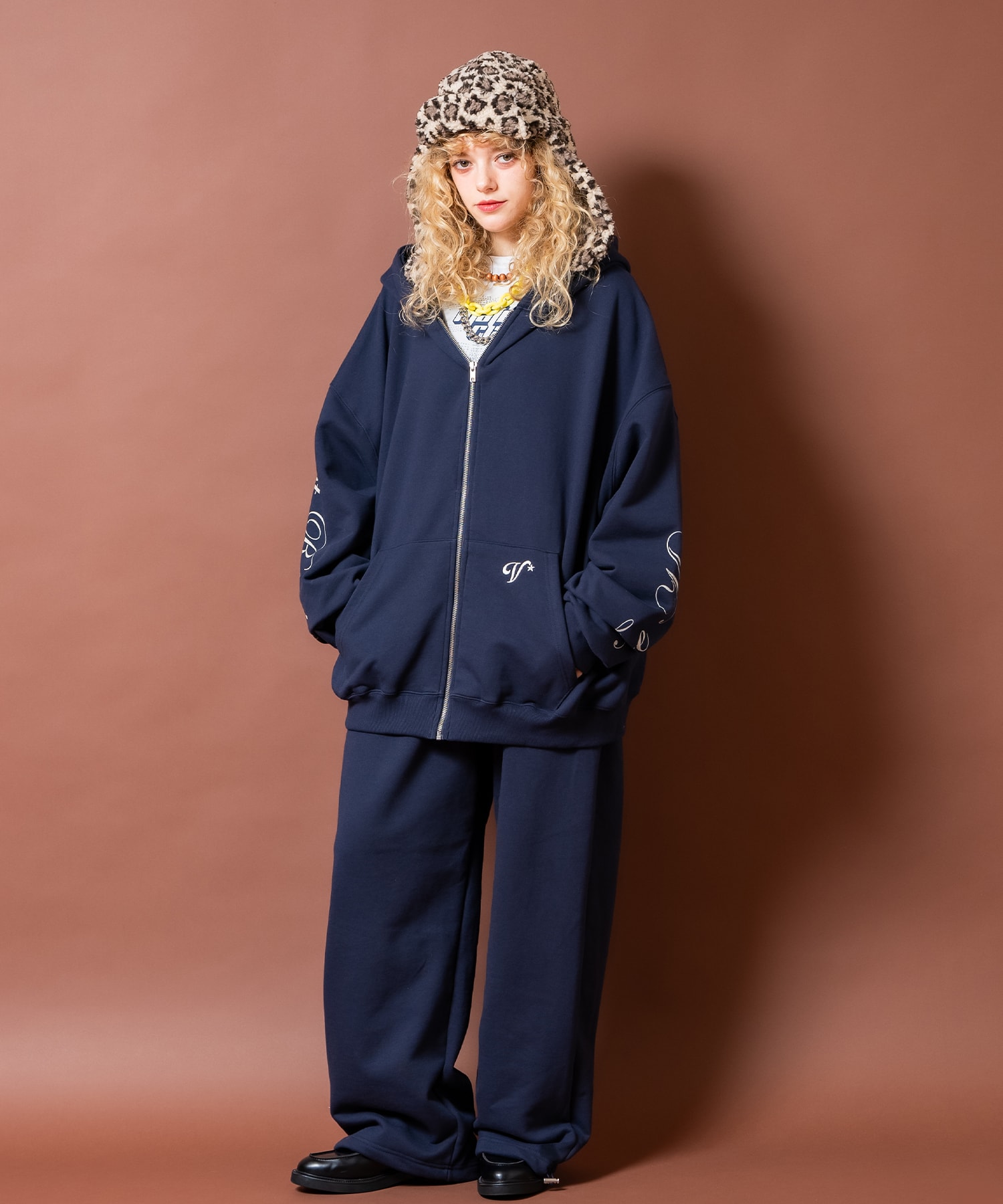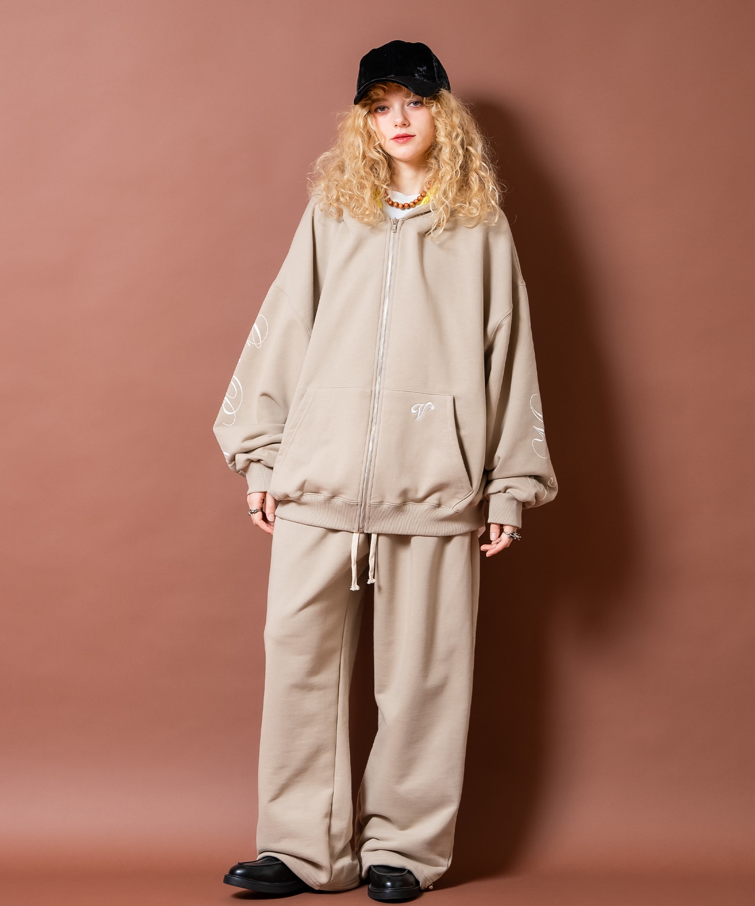 • a.p.o.v. フロントビッグロゴプリントスーパーワイドスウェットパンツ