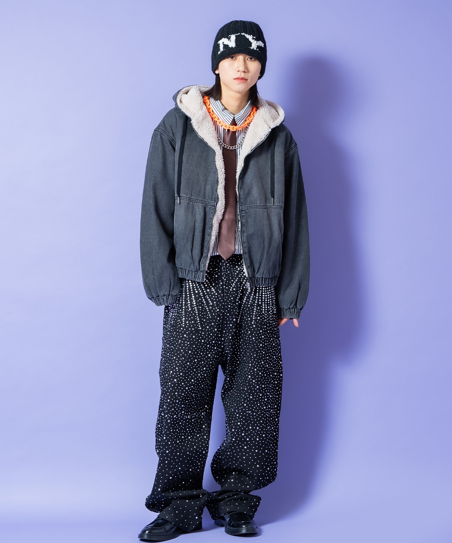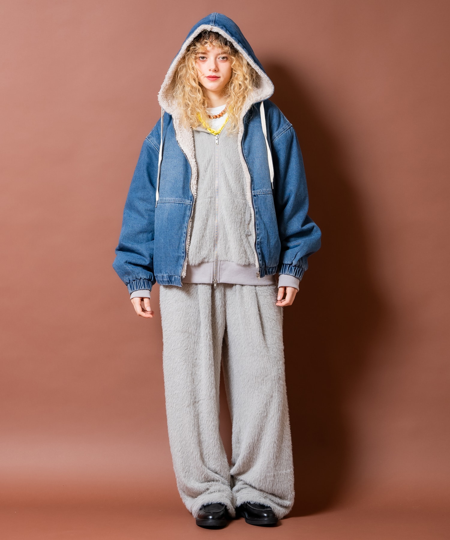 • a.p.o.v. 裏ボアヴィンテージウォッシュデニムオーバーサイズ短丈フードブルゾン