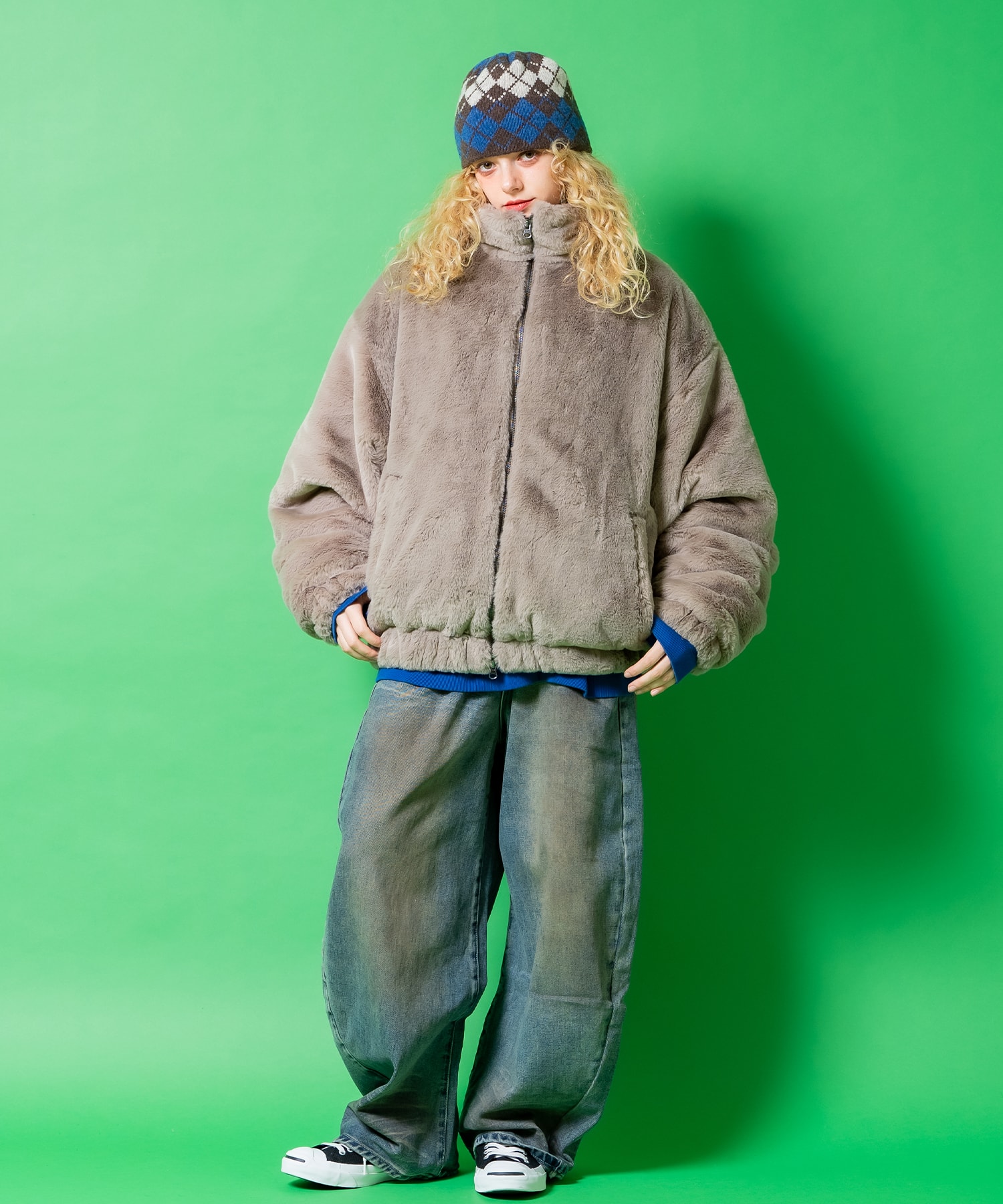 • a.p.o.v. 総ショートファーオーバーサイズスタンドブルゾンジャケット