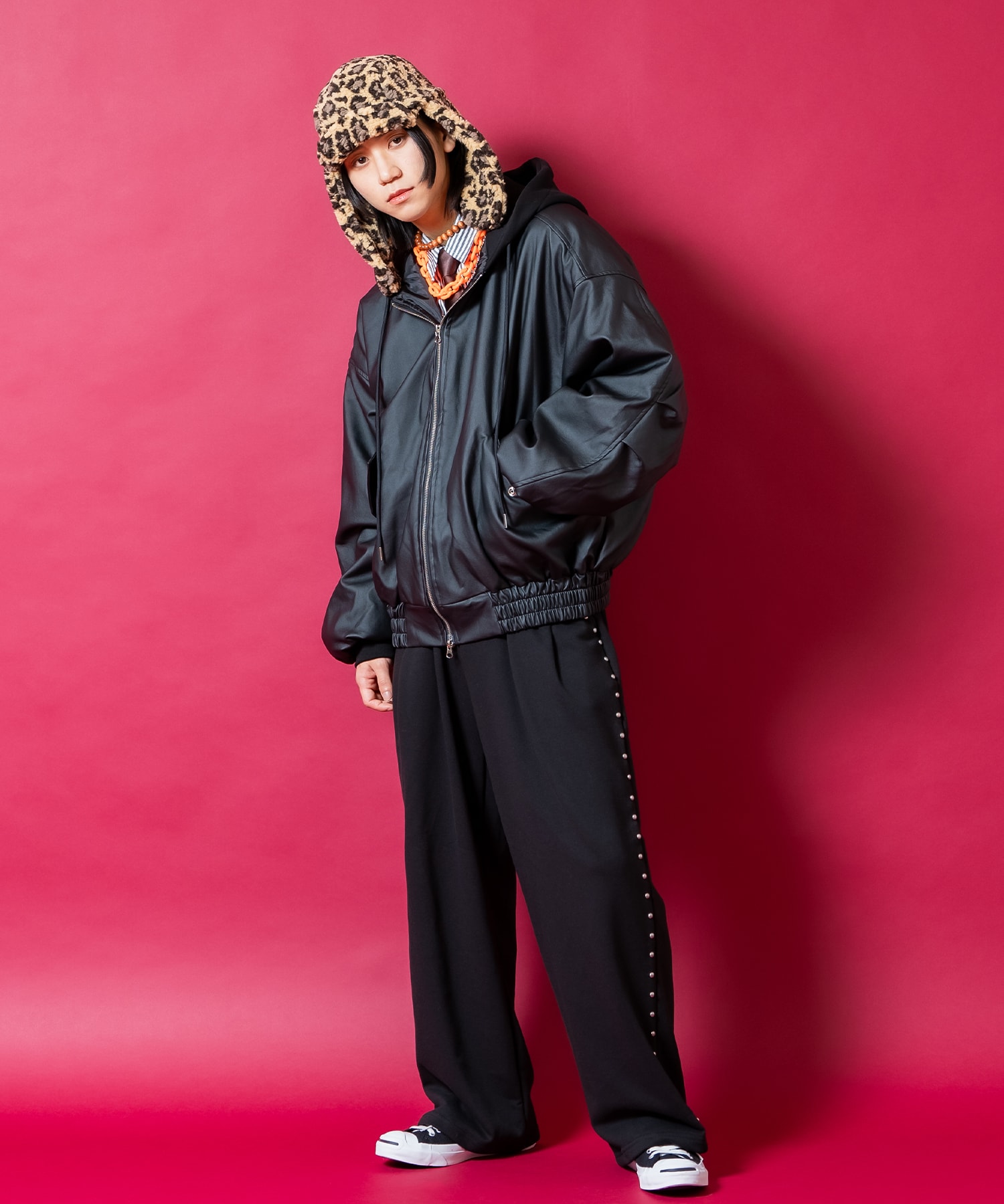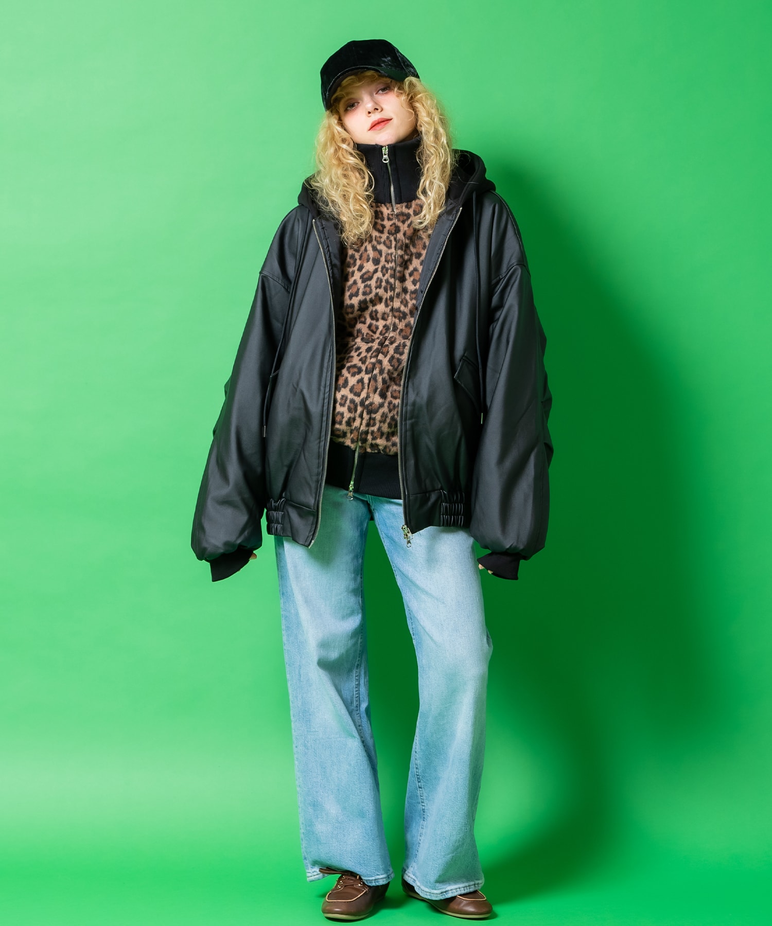 どこか無機質なモード感を漂わせるシワ無しのマットな質感が印象的な合成皮革×クラシカルなMA-1ミリタリージャケットをベースにしつつ、あえてアイコニックなシガレットポケットなどの無骨なギミックを排除してアーバンモードな世界観へとブラッシュアップ。ダッポリとした超オーバーサイジングで、丈感をグッと詰めた短丈仕様で一気にイットなトレンドスタイルにアップデートしたツボをついたフォルムワークも世界観にマッチ。グラマラスでタフな合成皮革仕様ながら大きなフードをあえてカジュアルなコットンスウェットで切り替えした遊び心もエレガント。裏地にたっぷりと中綿を入れた防寒性優れるヘヴィーアウター仕様で冬の主役アウター間違いなしの一着。韓国ストリートファッションをはじめとし、90s/Y2Kスタイル、古着ミックス、アメカジやワークスタイルなどのクラシックムードなスタイルはもちろん、スケーター、ストリートスタイル、グランジといったカジュアル全般、さらにはモードスタイルやキレイメなどのハズシアイテムやアクセントとしても◎