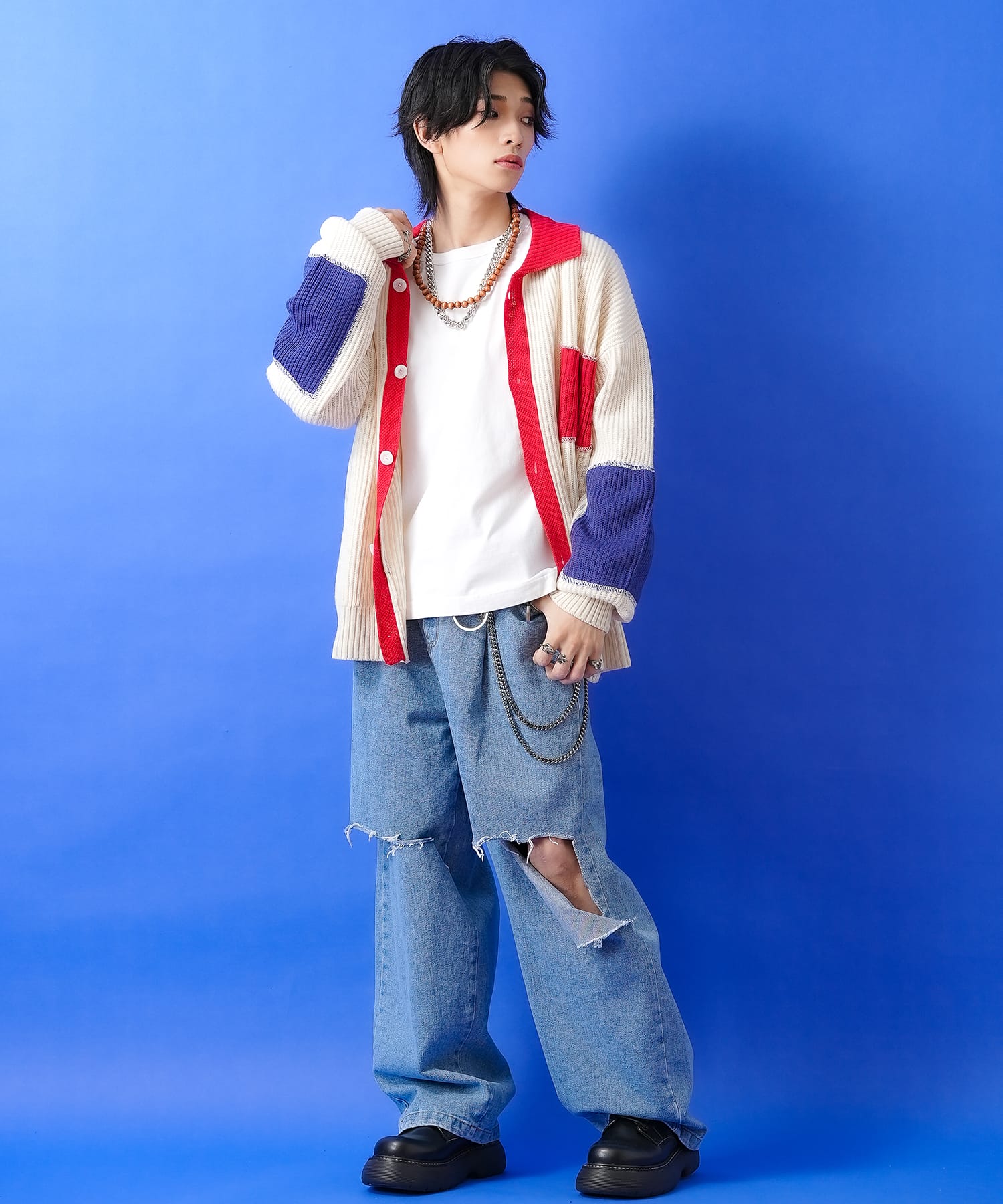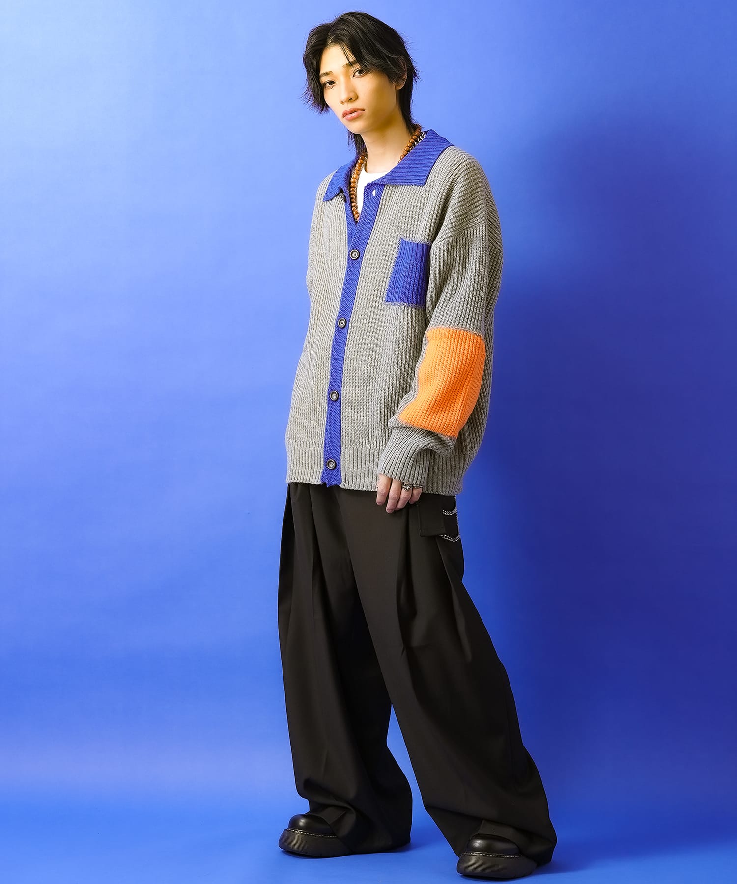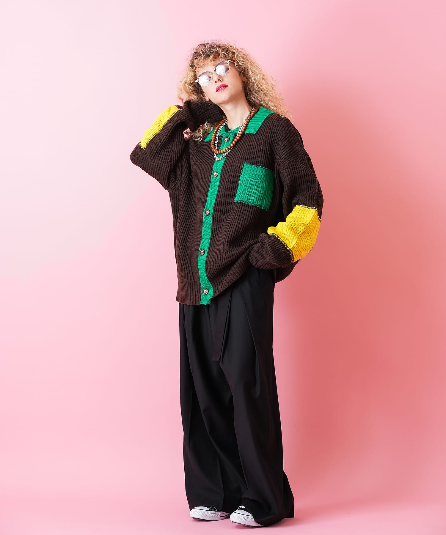 • a.p.o.v. ブロック配色切り替えニット襟付きカーディガン