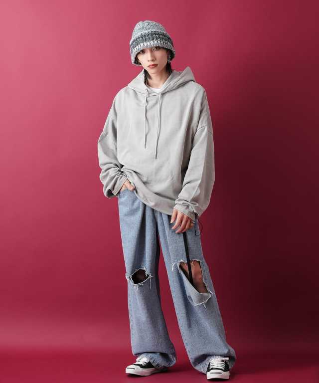 • a.p.o.v. ボタン変形ワイドスリーブピグメントスウェットプルオーバーパーカー