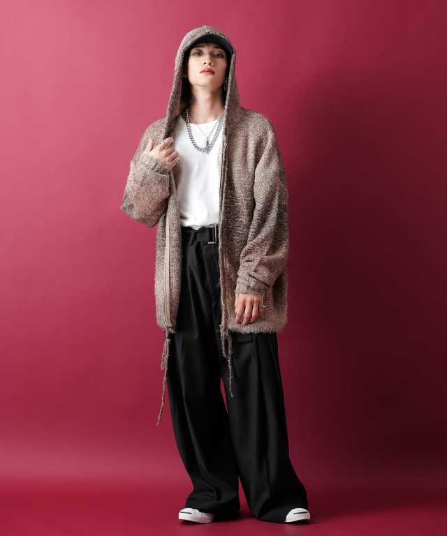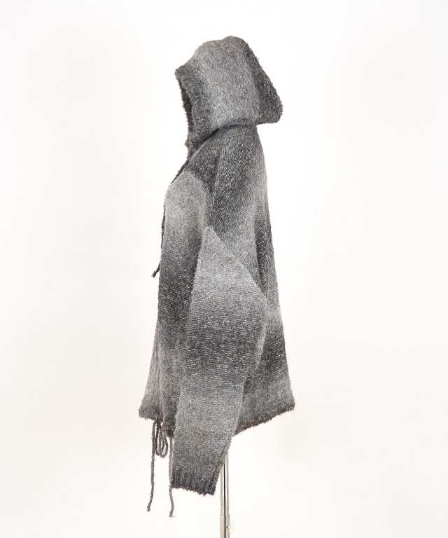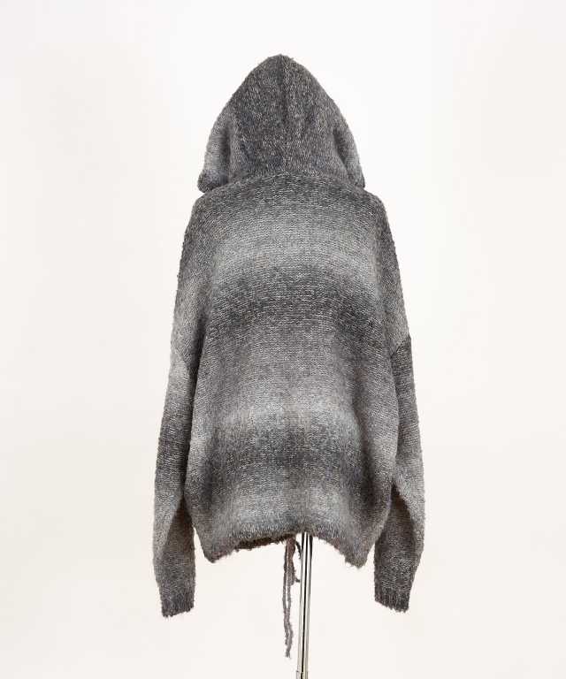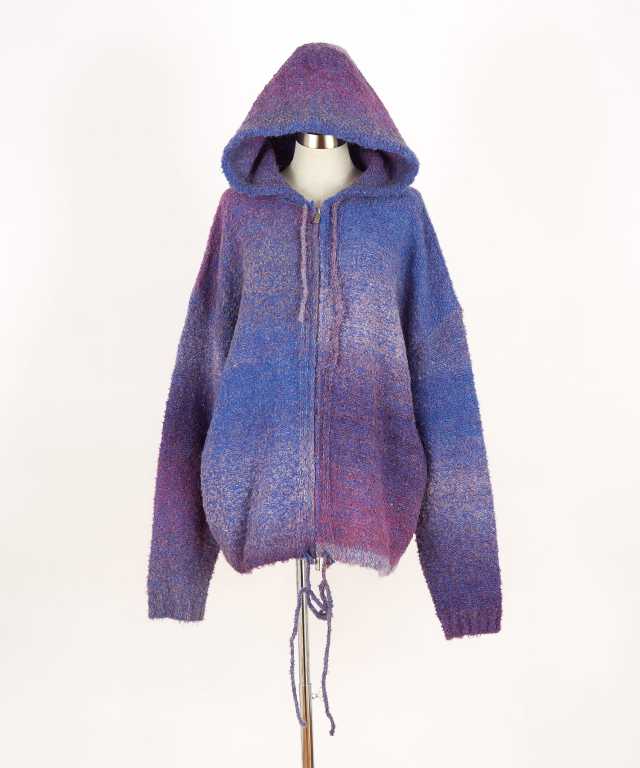 ムニムニっとした独特のテンションと表面に毛羽立ちとボコボコっとした立体感を持たせた肉厚のニット素材×幻想的で浮遊感漂うグラデーションカラー&スラブ模様が一見してスーパーエレガント。ダブルジップ仕様のファスナー、絞ることでフォルムを変化できる裾へのドローコードなど細部のディティールも生地の持つ美しさを活かし抑えめにしたミニマルなモードニュアンスが上品。90s/Y2Kスタイル、グランジ、古着ミックススタイルにも相性抜群。