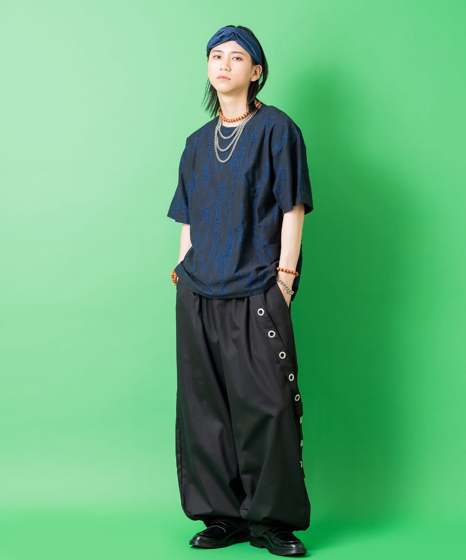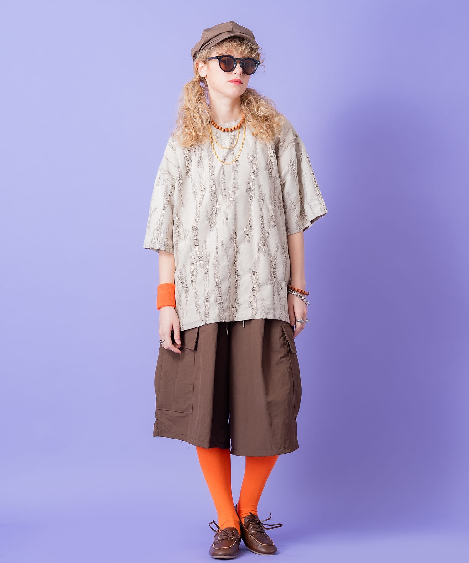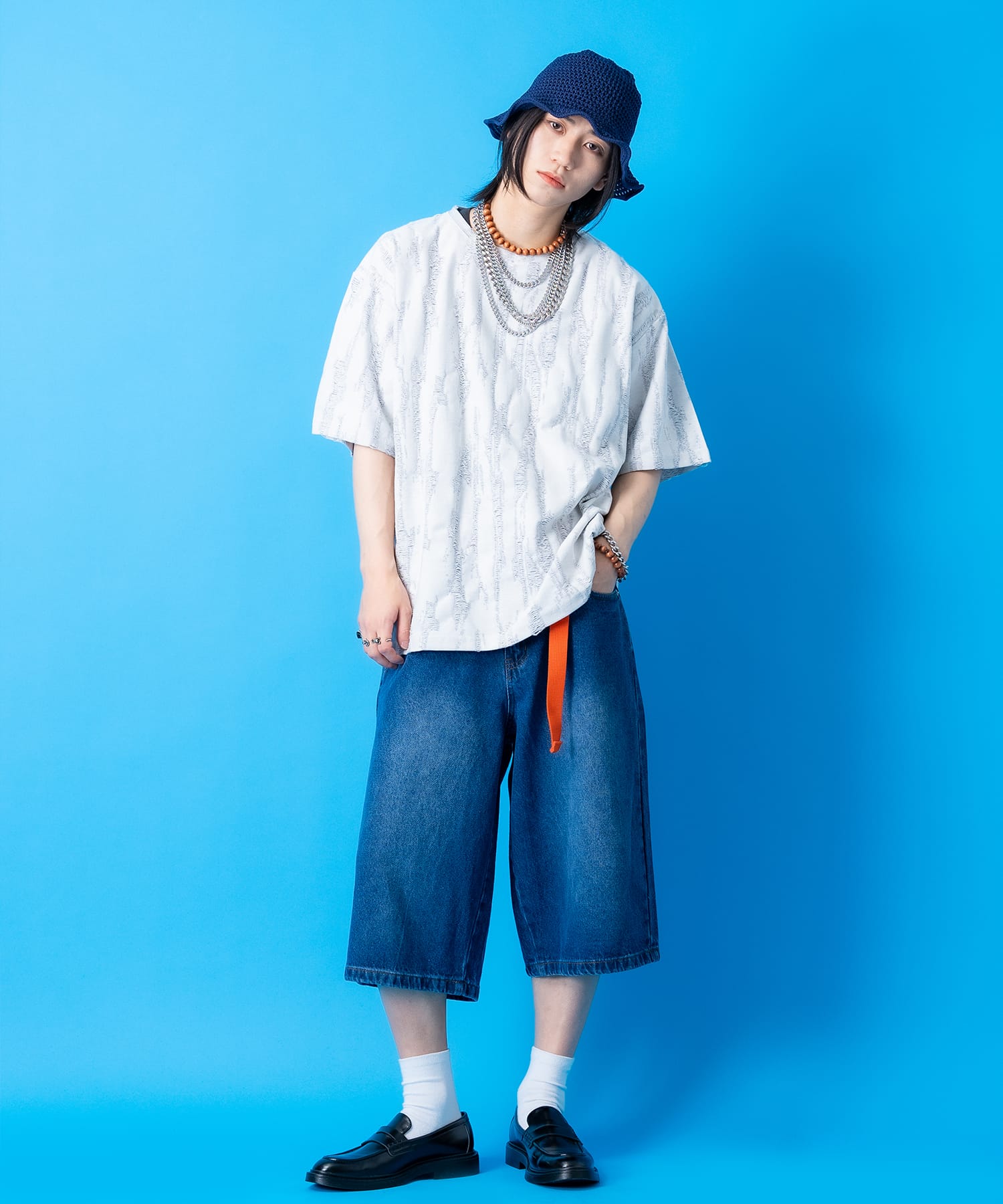 • a.p.o.v. ジャガード編みフリンジダメージ加工模様オーバーサイズTシャツ
