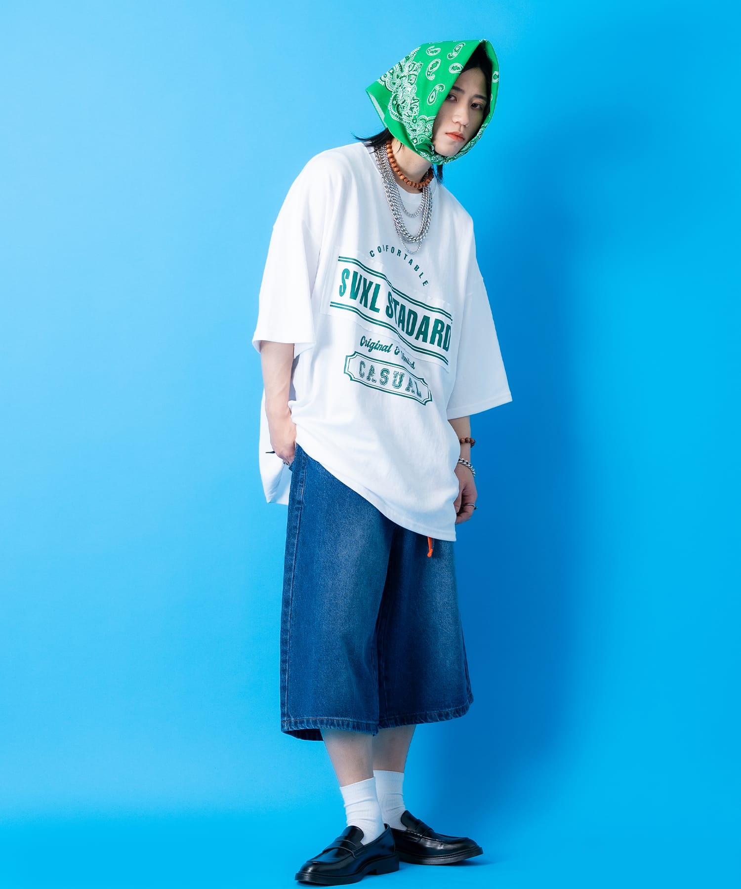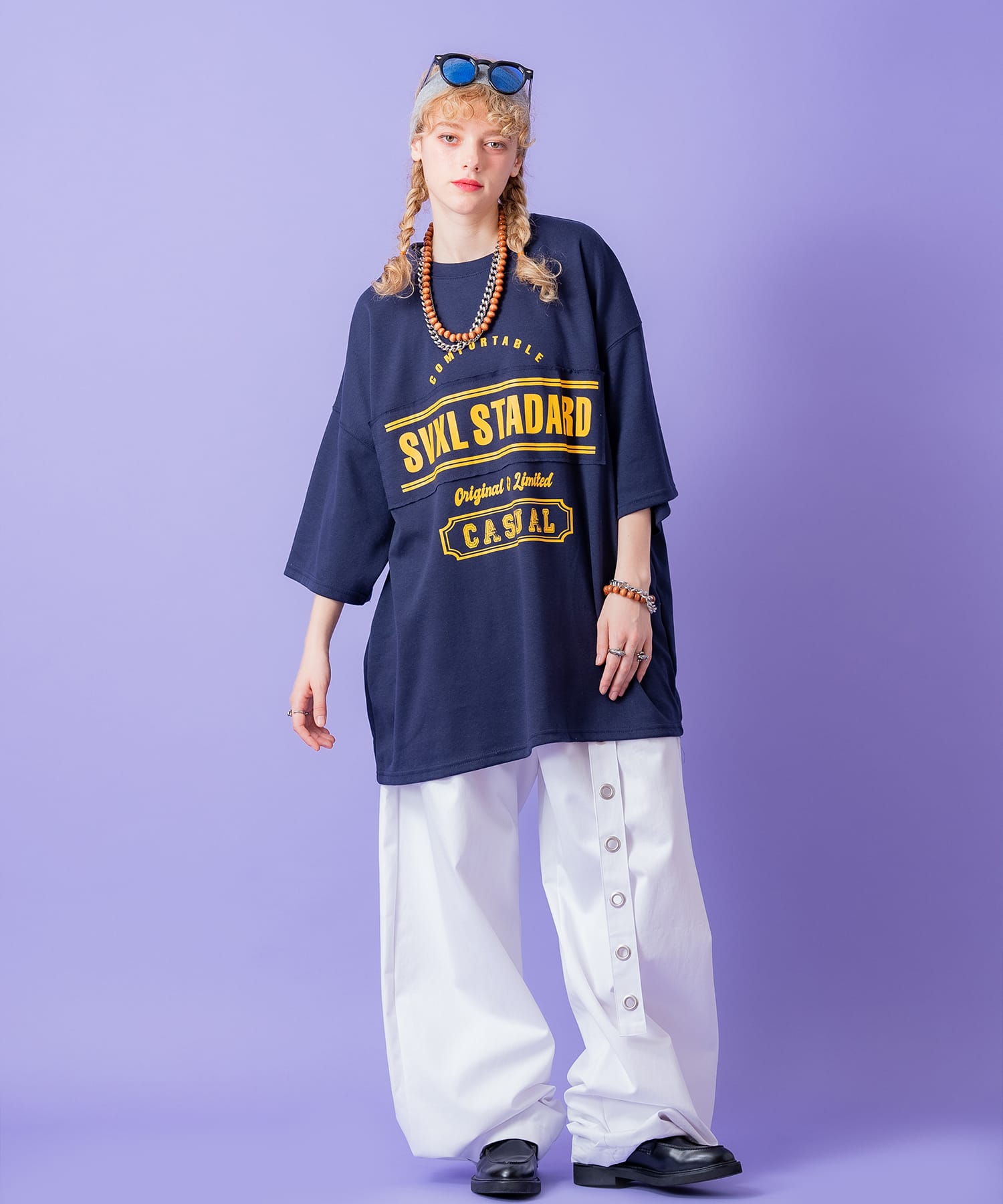 掠れを表現したカレッジプリントのヴィンテージライクなデザイン×ボディーと同生地にビッグロゴプリントを施してラフにパッチワークしたミックスデザインがアイキャッチーかつ90年代を彷彿とさせるレトロな空気感で◎。一枚でもサマになる主役顔かつどこかクラシックな空気感も漂わせるデザインはストリートにモードスタイルはもちろんのこと、90s、Y2Kファッション、アメカジや古着ミックススタイルなどにも相性抜群な一枚。