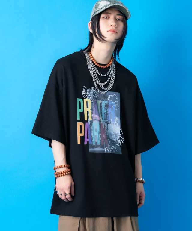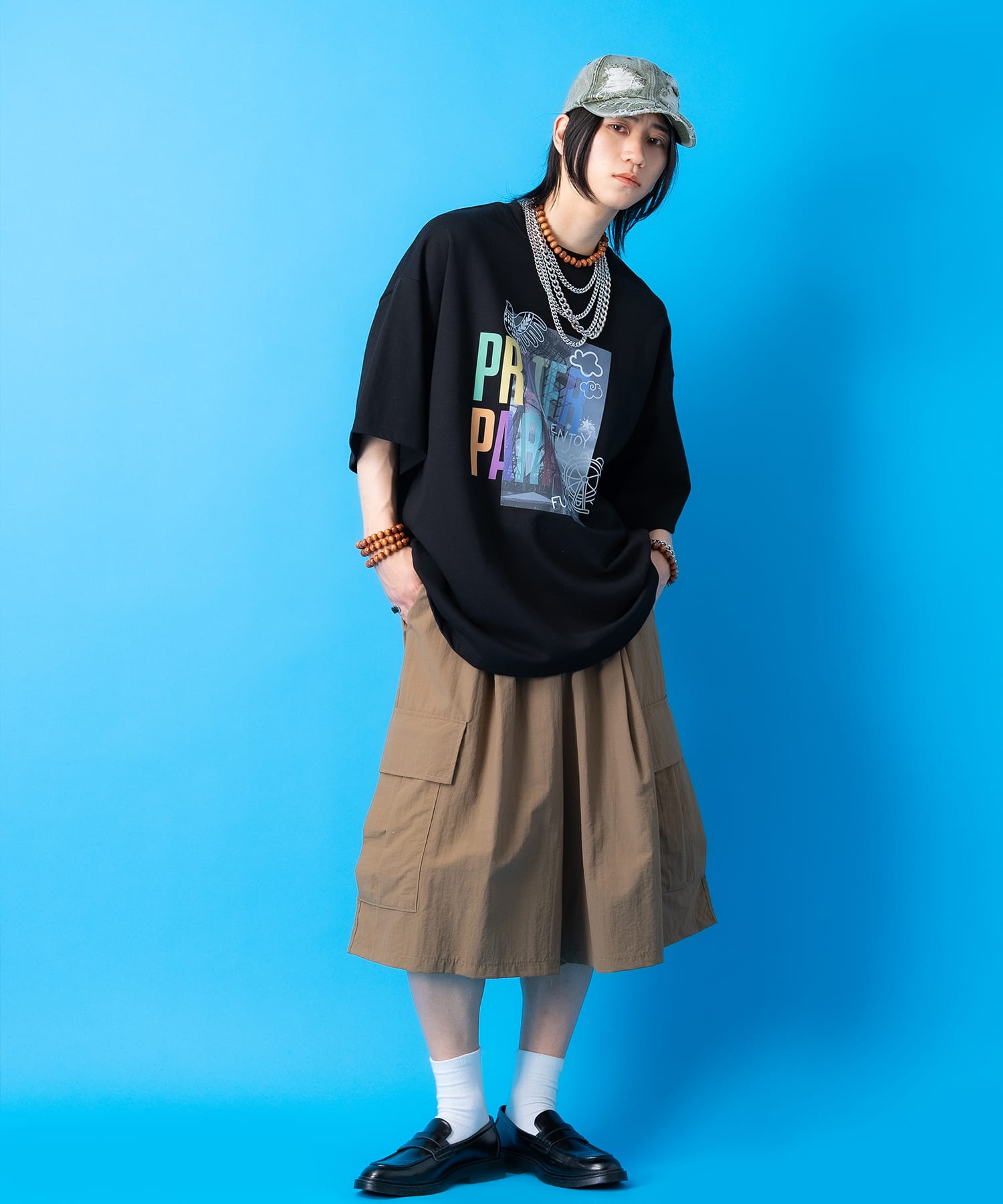 どこかセンチメンタルな空気感を漂わせる観覧車のセピアカラーフォトをベースに、ポップでキュートなタッチの落書きやカラフルなロゴでレイヤードプリントしたアッパーかつファニーでスウィートな世界観が印象的。一枚でもサマになる主役顔かつどこかレトロでクラシックな空気感も漂わせるデザインはストリートにモードスタイルはもちろんのこと、90s、Y2Kファッション、アメカジや古着ミックススタイルなどにも相性抜群な一枚。
