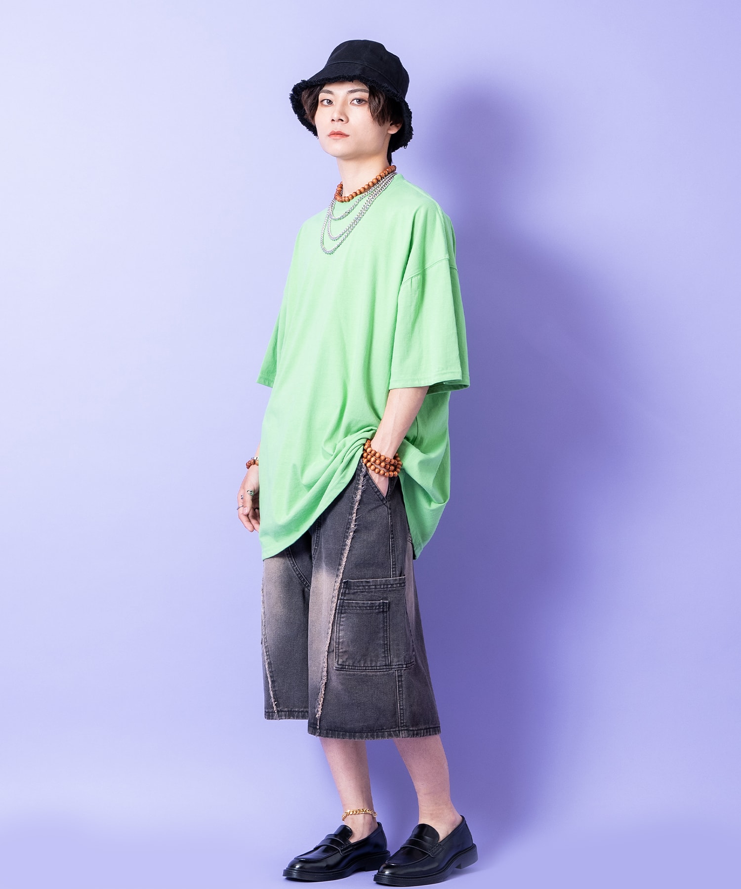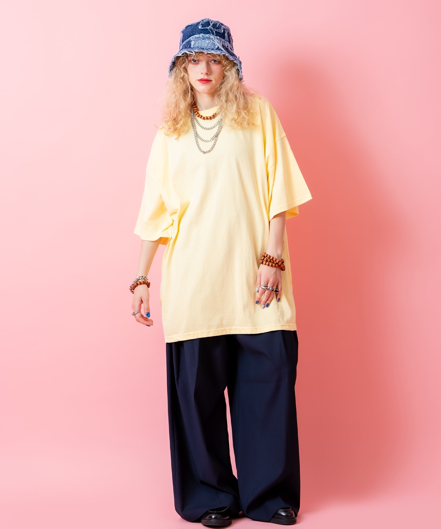 ダボっとラフにストリートな感覚でとりいれられるスパーオーバーサイズ/ビッグシルエットかつやや長めにとられた丈感もアンニュイなフォルムワーク×ワンウォッシュでクラシカルな雰囲気をもたせた軽やかで柔らかな触感とこなれた空気感を感じさせる表情のコットン生地×無地Tの『良さ』を感じられる定番のリブクルーネックがグッドムード。コーデ馴染みの良い定番の黒白グレーやチャコール、ワンウォッシュの妙を表現できるベージュから差し色や色合わせ、主役にもってきたくなる色モノ・・コーデやスタイルに合わせて複数選びたくなるカラー展開も◎。モードスタイルやキレイメ、ストリートスタイルはもちろん、アメカジや古着ミックス、Y2Kスタイルなどどんなスタイルにも馴染んでくれる『使える』一枚。