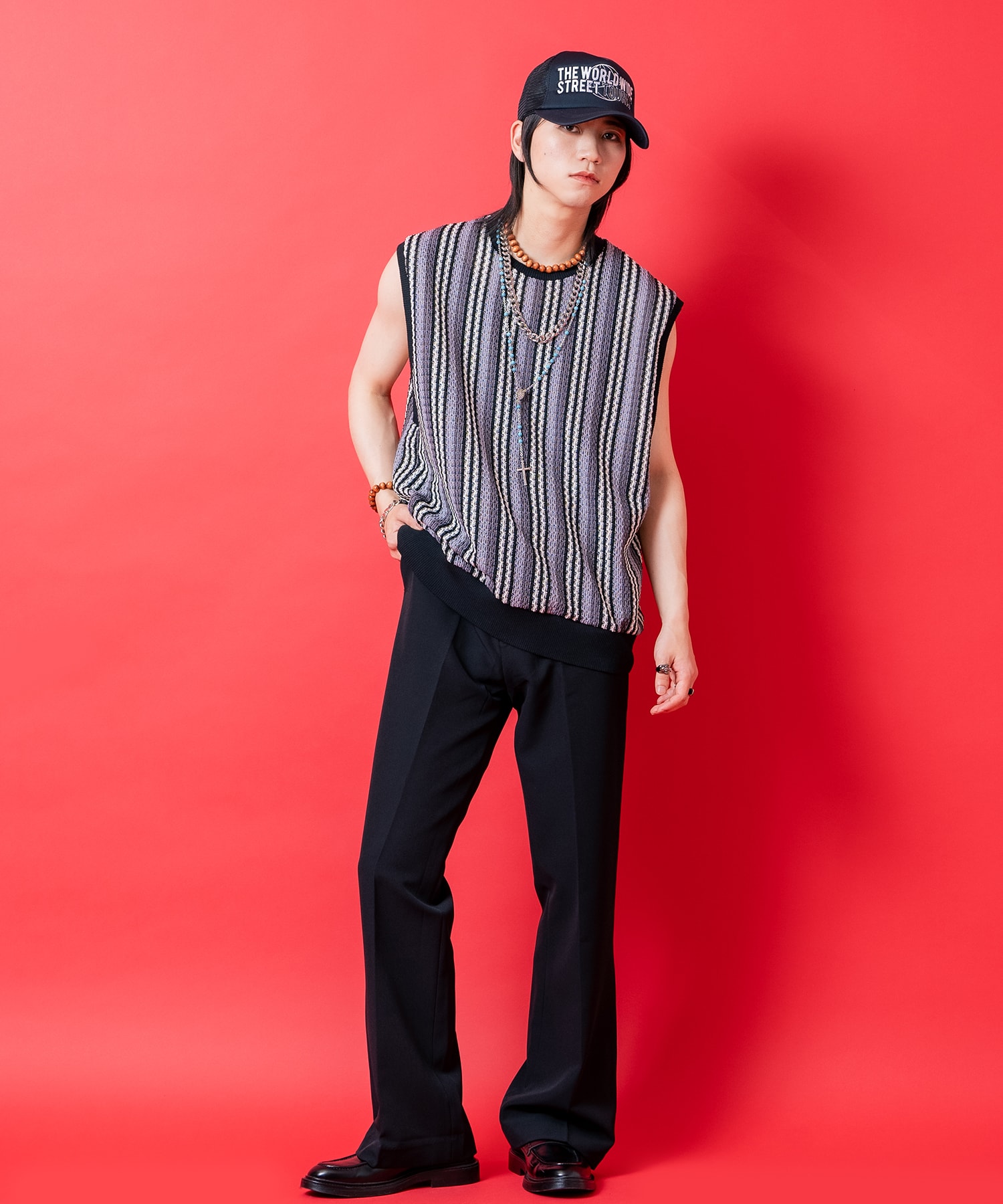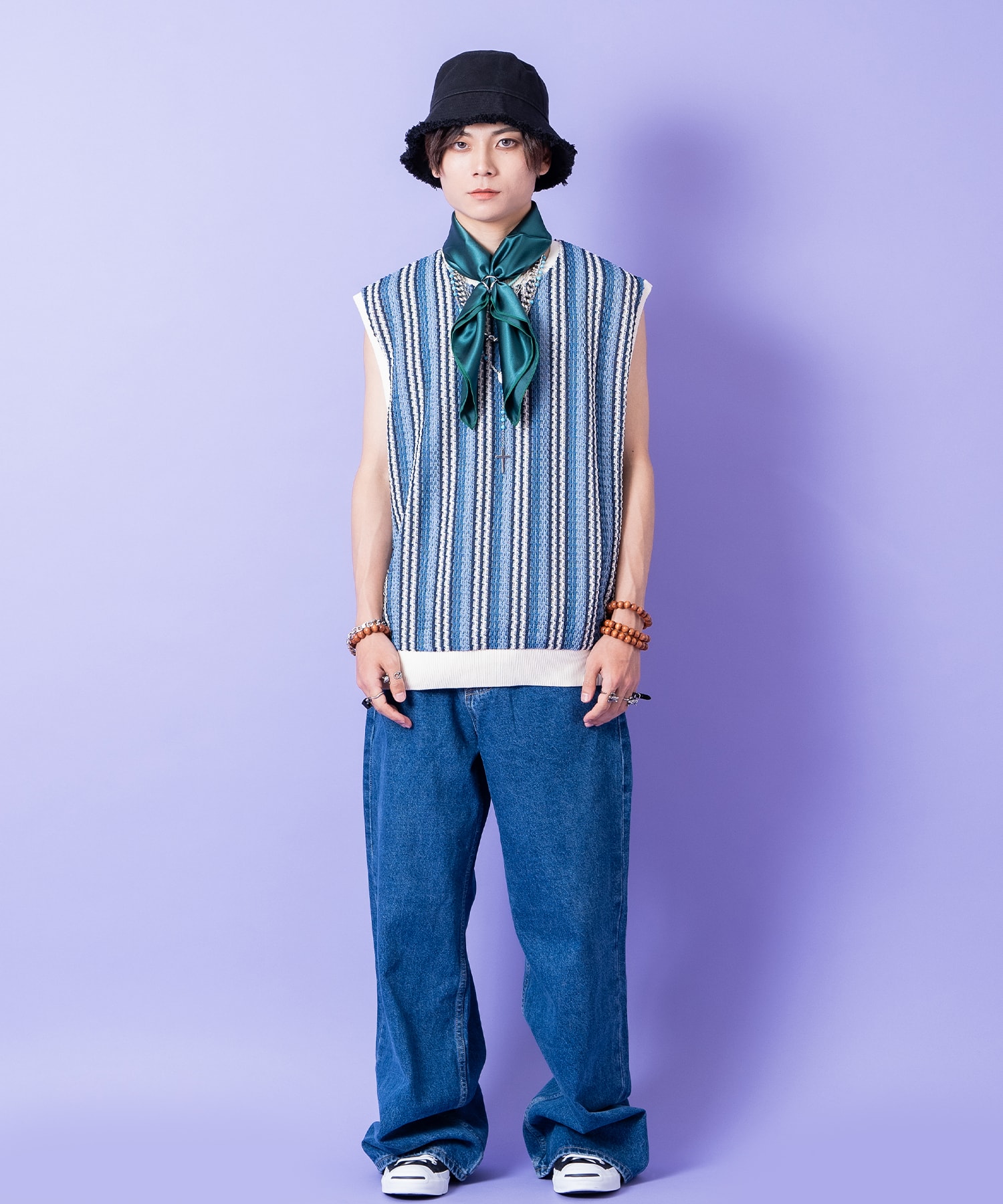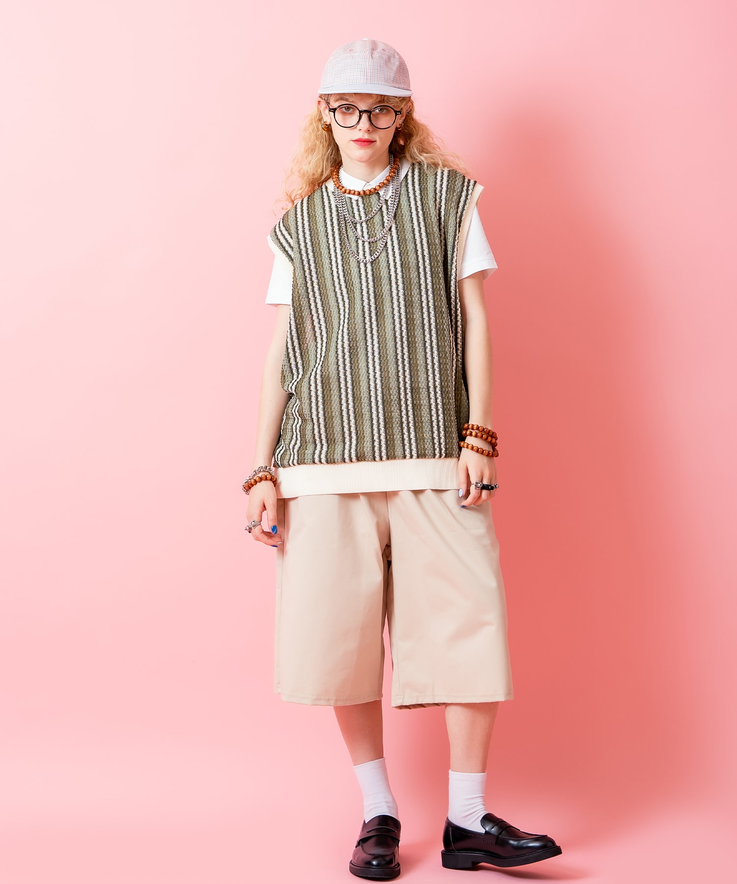 90s、Y2Kスタイルや古着ミックススタイルなどのクラシックなムードのトレンドの流れからも注目のニットベスト/ノースリーブ。丈を抑えつつ肩落ちのルーズなニュアンスでラフに着崩したいやり過ぎないバランスのオーバーサイズ/ビッグシルエットがメンズレディース問わずユニセックスで着れる一枚。