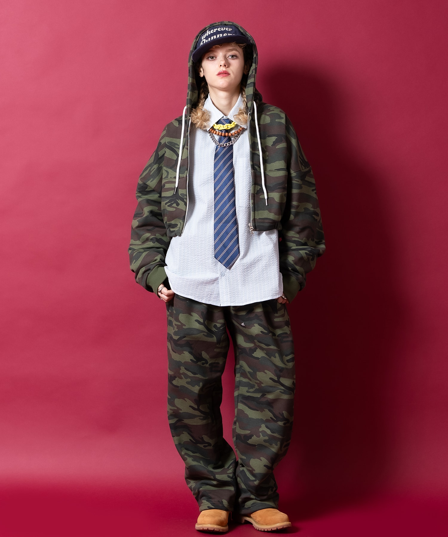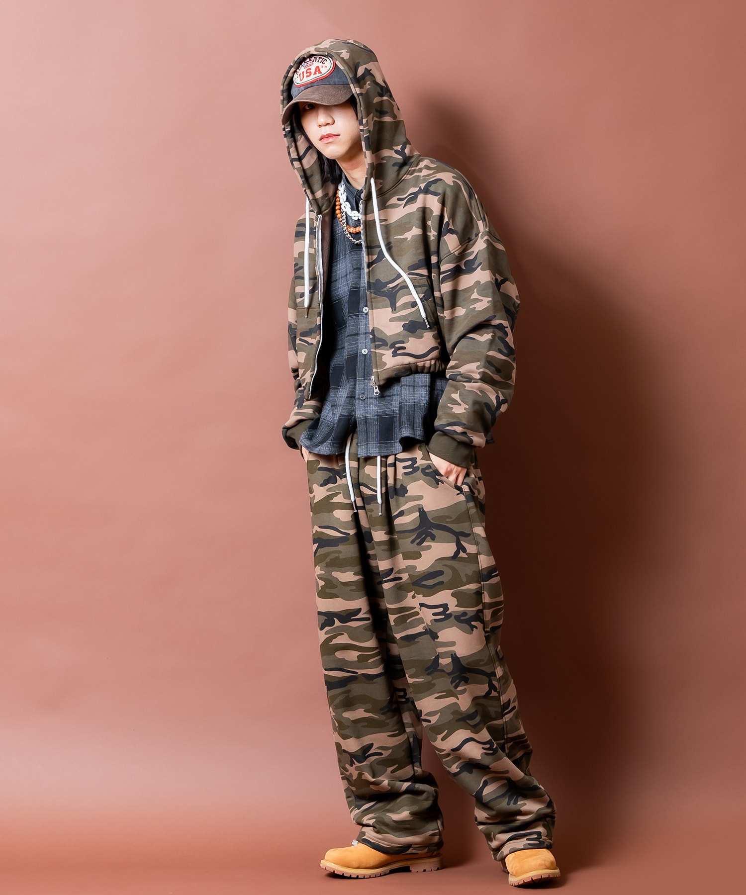 • a.p.o.v. カモフラスウェットオーバーサイズクロップド丈ZIPパーカー