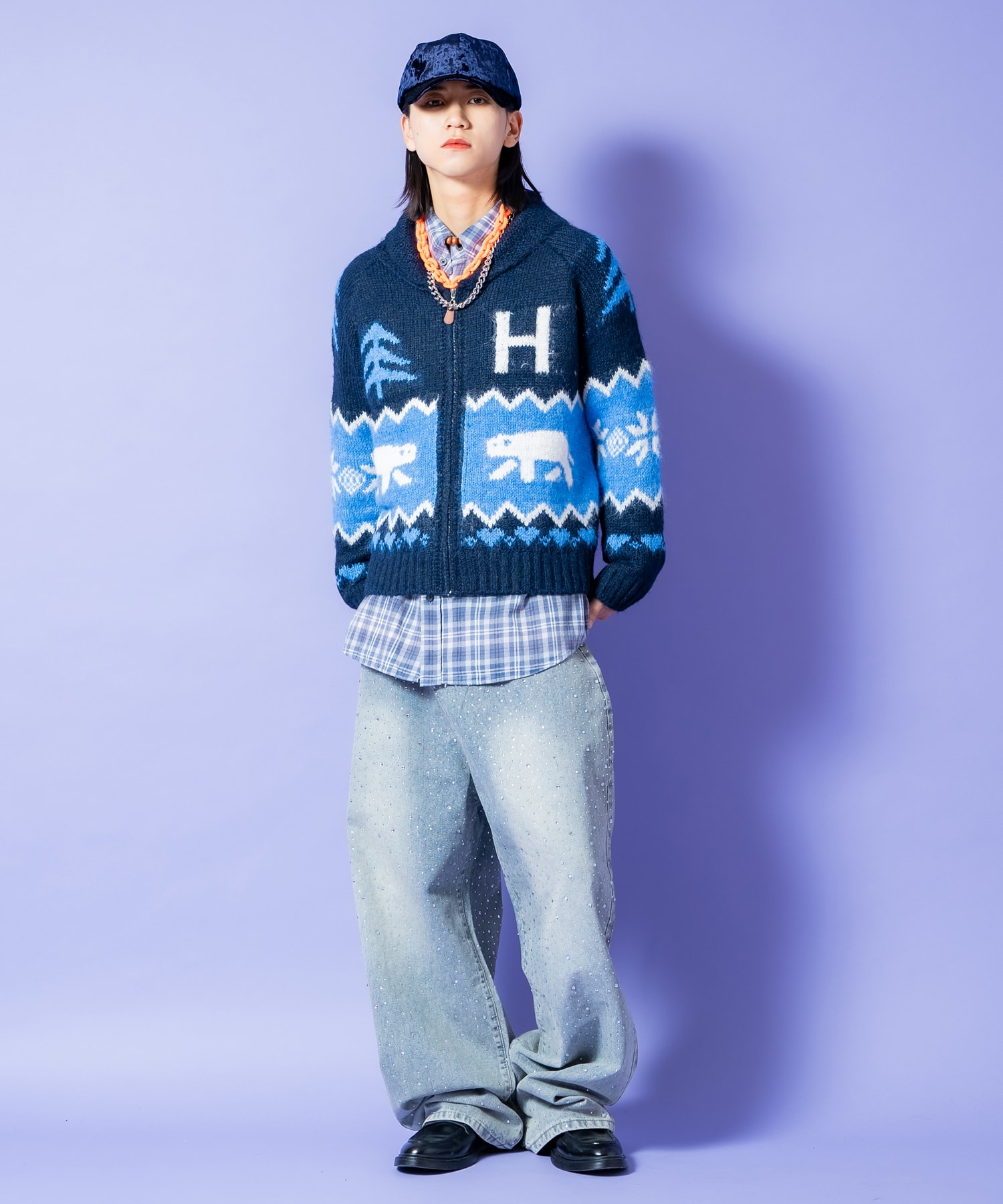 フワフワっと柔らかく毛羽立ちを与えた上品な風合いのファー混が高級感溢れる肉厚のアクリルニット×レトロでクラシックなポップニュアンスが可愛らしくもエレガントなノルディック柄をベースに、大ぶりのショールカラー&ジップアップデザインでカウチンセーターを構築。やり過ぎないバランスでルーズ&クロップドの今顔な短丈フォルムを形成したイットなシルエットもグッドムード。ザクっと羽織るだけで世界観を作り出してくれる主役アウター/トップス間違いなしの一着。韓国ストリートファッションをはじめとし、90s/Y2Kスタイル、古着ミックス、アメカジやワークスタイルなどのクラシックムードなスタイルはもちろん、スケーター、ストリートスタイル、グランジといったカジュアル全般、さらにはモードスタイルやキレイメなどのハズシアイテムやアクセントとしても◎