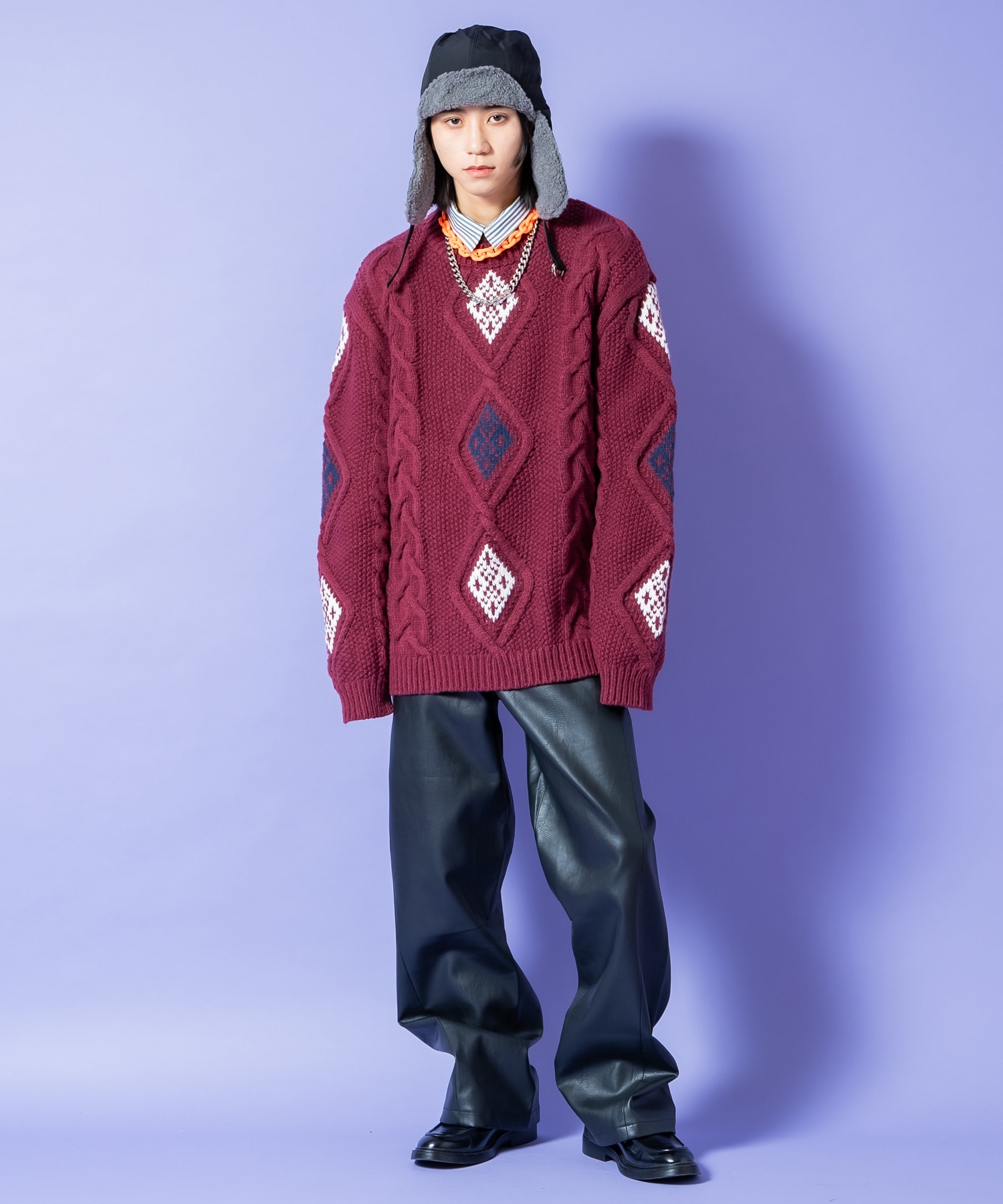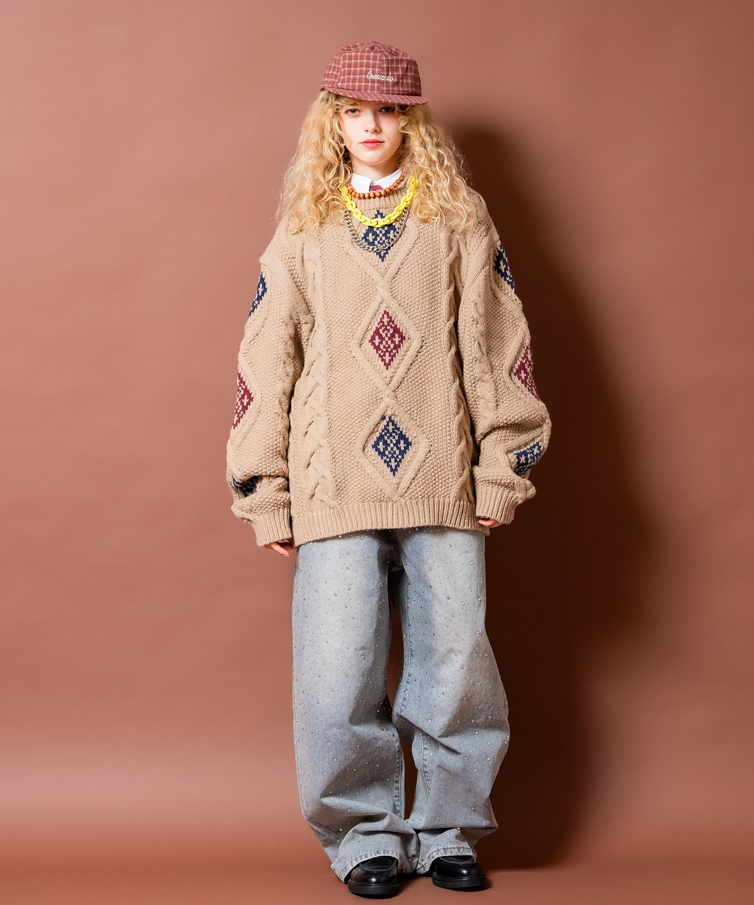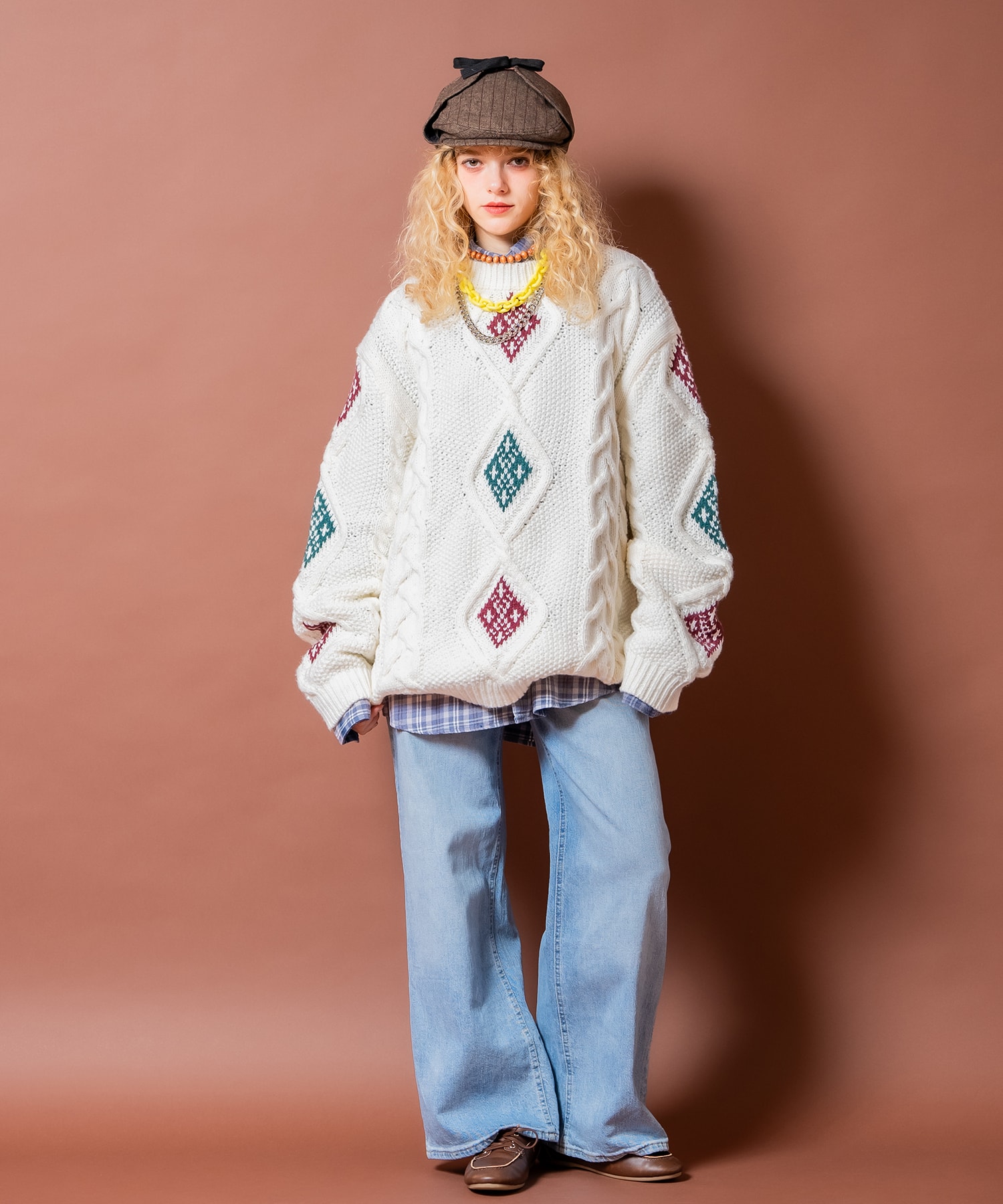 • a.p.o.v. ネイティブライクダイヤ柄ミックスケーブル肉厚アクリルニットオーバーサイズセーター